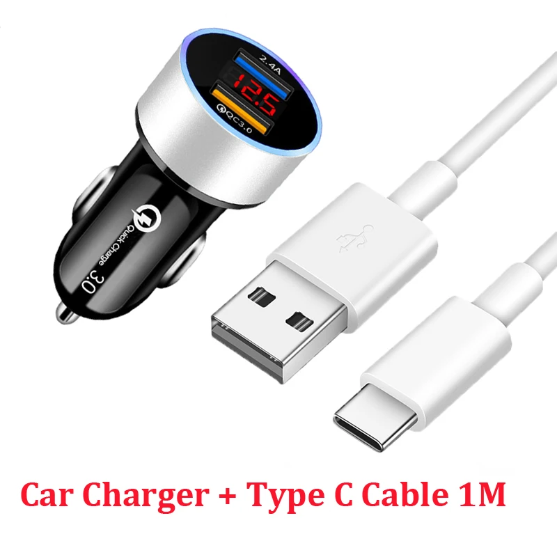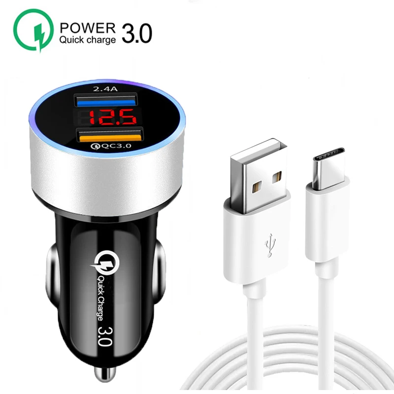 Автомобильное зарядное устройство QC 3,0 с двумя USB-портами и кабелем USB Type-C для Xiaomi Mi 8 9 10 Pro Lite Redmi 8 9A 8A Note 9S 9 8 8T 7 Pro
