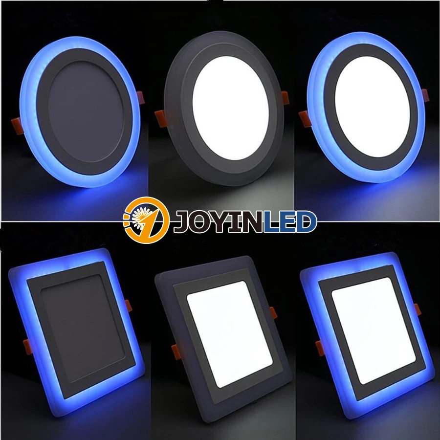 Круглая квадратная Светодиодная потолочная Встраиваемая панель, светильник для украшения дома, 6 Вт, 9 Вт, 16 Вт, 24 Вт, Светодиодная панель, синий + белый цвет RGB