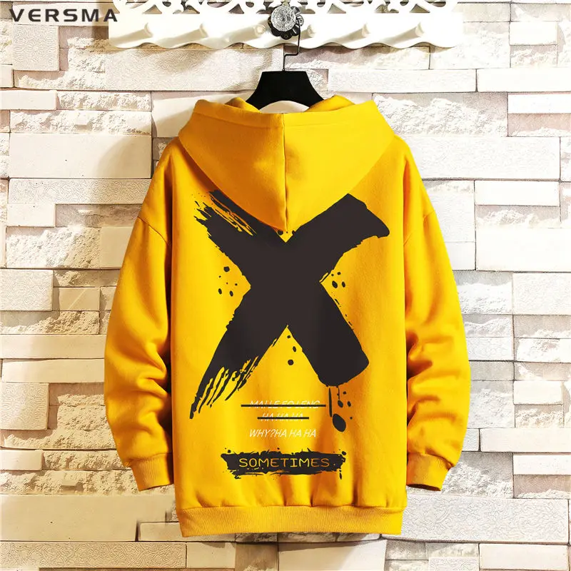 VERSMA 2020 Осенняя обувь в японском стиле Харадзюку в стиле граффити толстовки с капюшоном унисекс Для мужчин хип-хоп Уличная желтый свитер с капюшоном мужской дропшиппинг