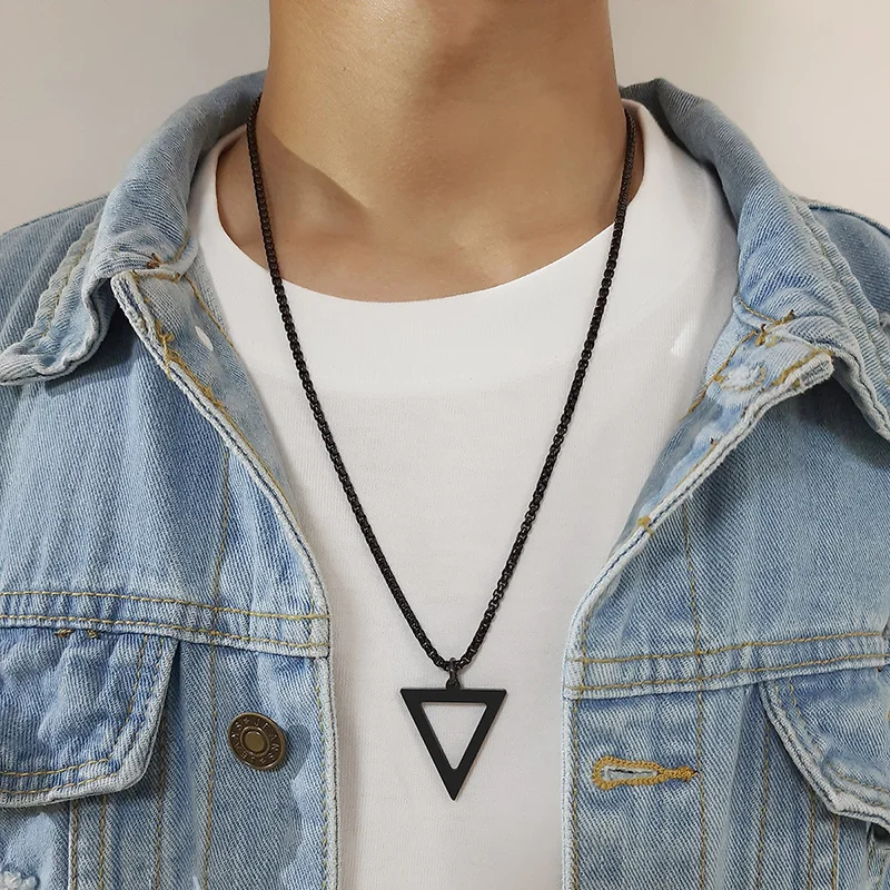 Черное треугольное ожерелье для мужчин, цепочка из нержавеющей стал...