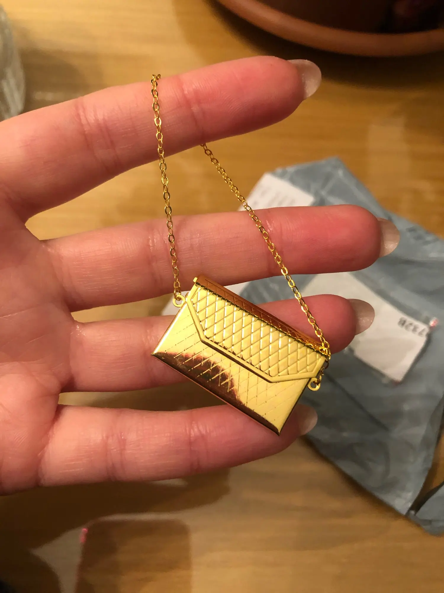 Отличная сумочка, использую как подвеску, выглядит так же, как на картинке. Аккуратная, плотно защёлкивается, при желании туда можно что-то сложить