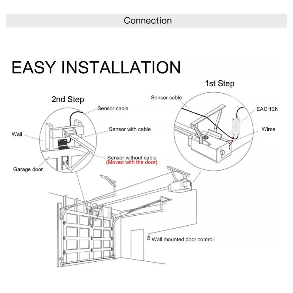 Вы должны добавить этот контроллер двери гаража для работы с приложением tuyasmart или smartlife и связать его с Amazon Alexa или Google Assistant для достижения голосового управления. У нас есть защита голосового кода, когда вы открываете дверь гаража.