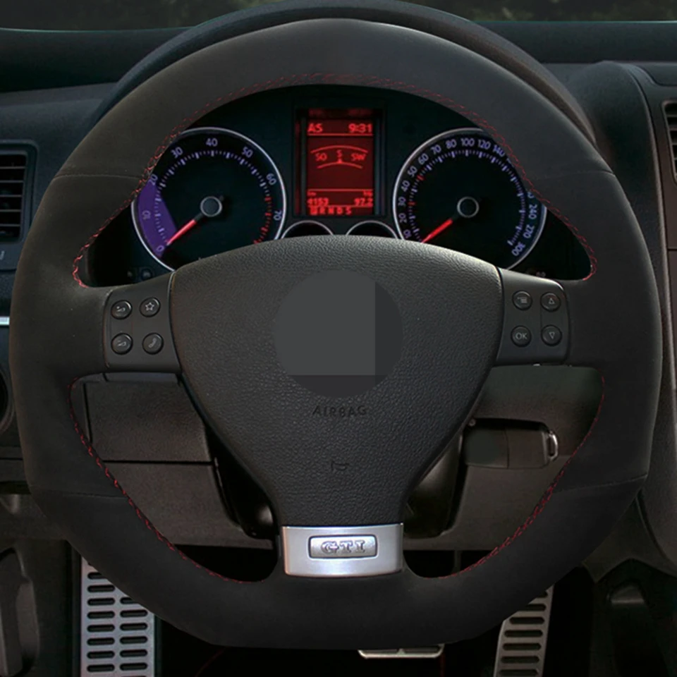Чехол рулевого колеса автомобиля из мягкой черной замши для Volkswa...