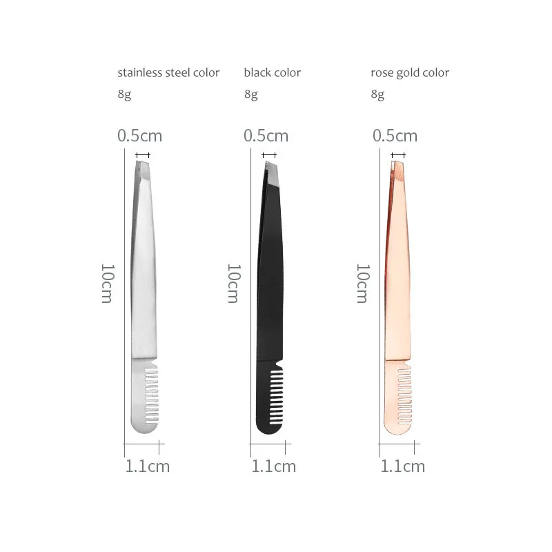 Пинцет для бровей с расческой для бровей, из нержавеющей стали