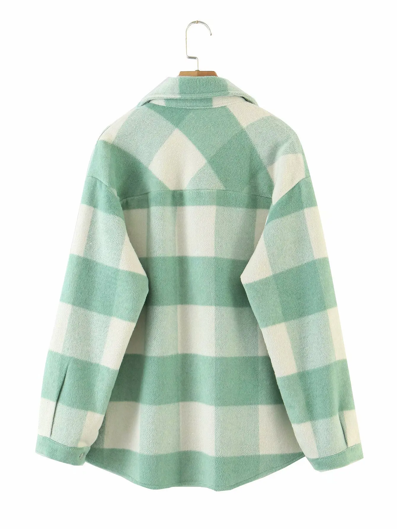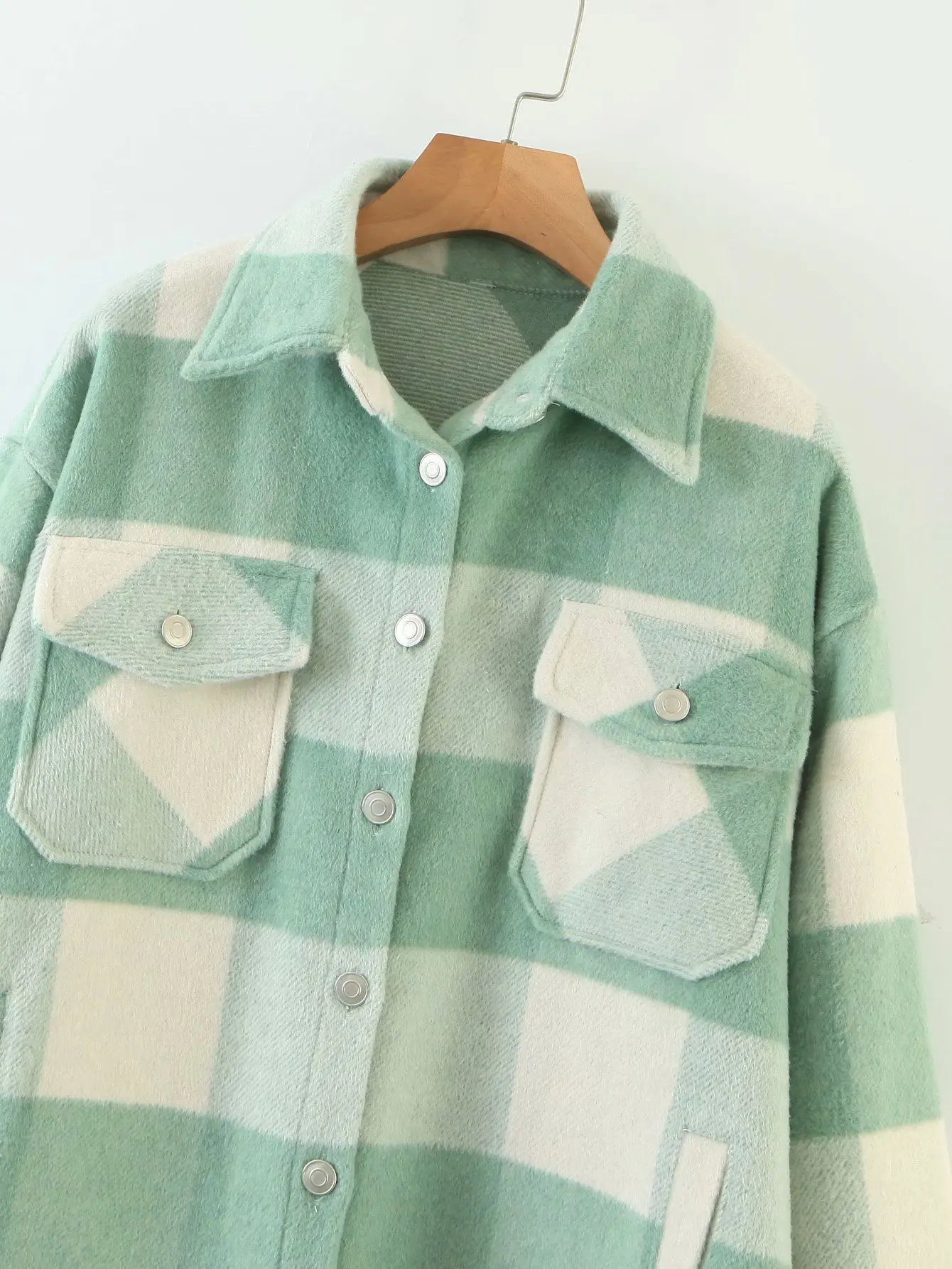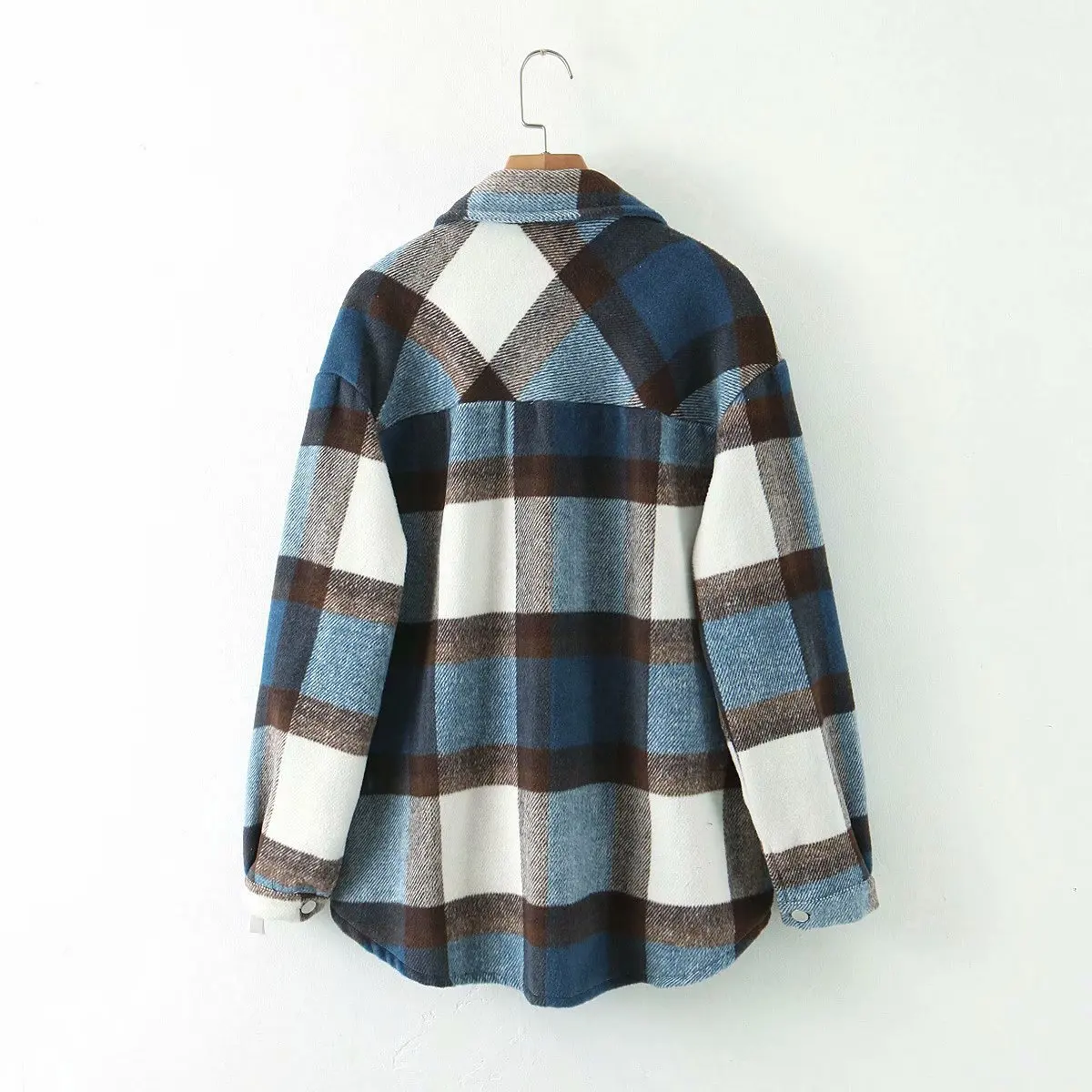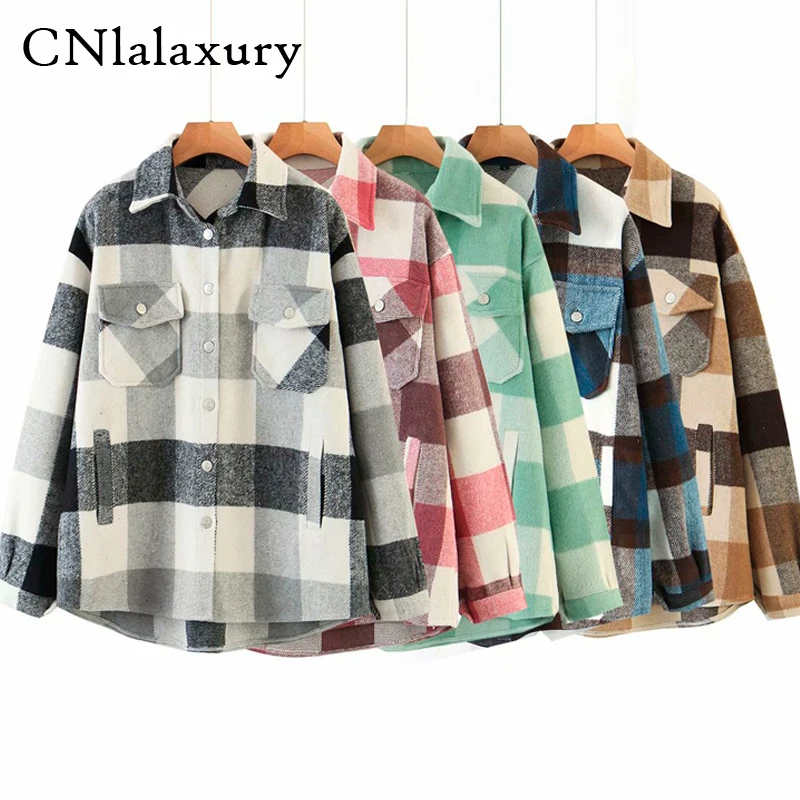 Женская клетчатая куртка с отложным воротником и длинным рукавом, винтажная Свободная куртка большого размера с карманами, 2020
