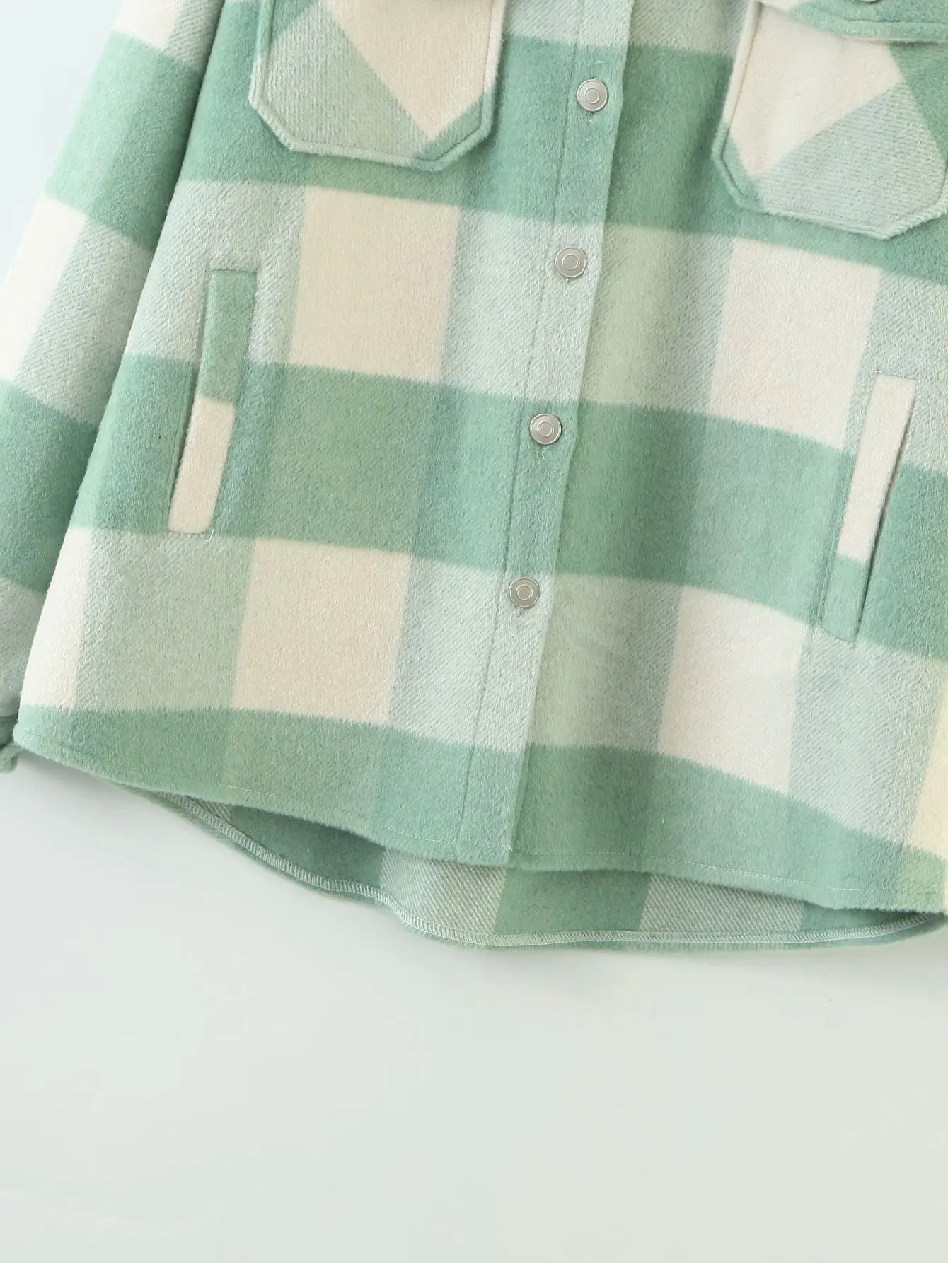 Куртка женская в клетку с карманами, винтажная Свободная куртка с отворотным воротником и длинным рукавом, верхняя одежда, шикарный топ, 2020