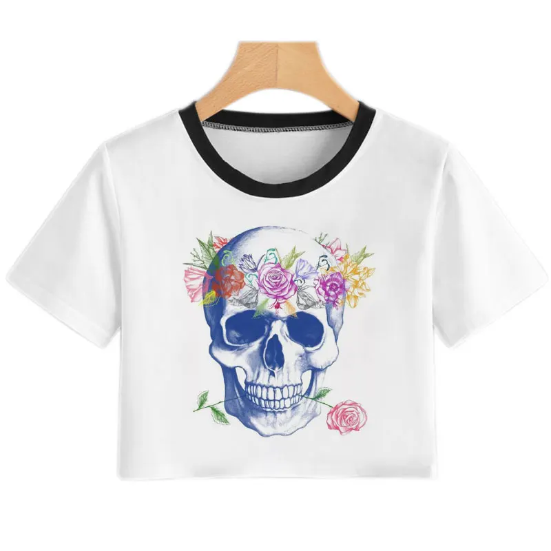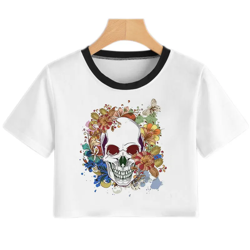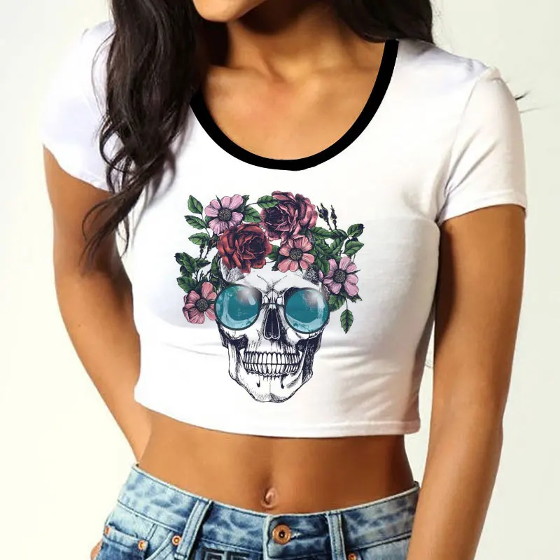 Женские футболки с принтом робота, черепа, уличная одежда, женская летняя Веселая модная футболка в стиле Харадзюку, женский укороченный топ, Повседневная футболка с коротким рукавом