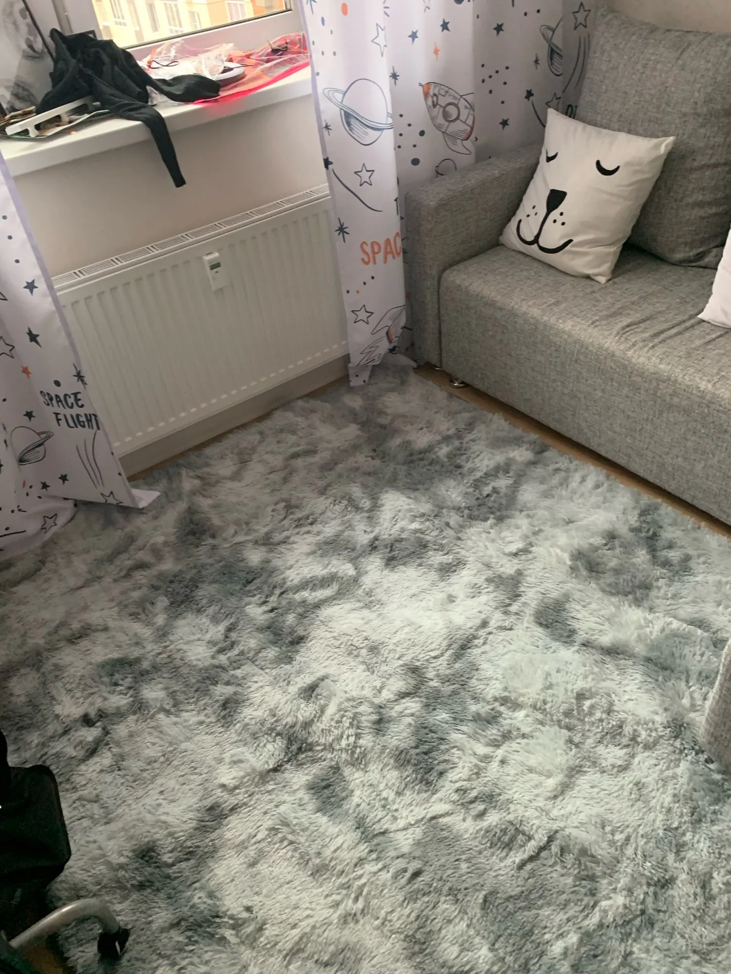 Мягкий, милый, цвет почти такой же, как на картинке, пришёл быстро, за две недели где-то. Классный ковёр.