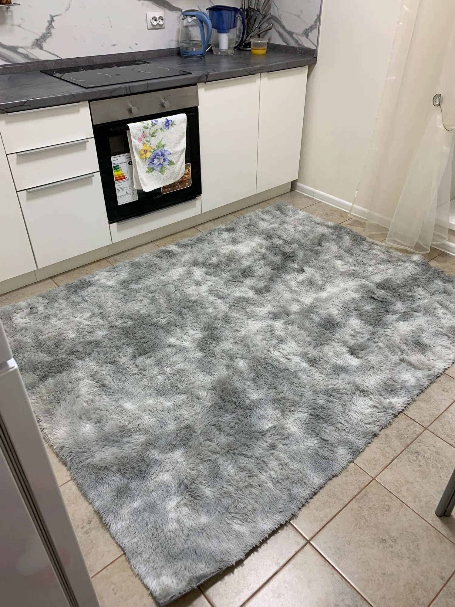 Товар пришёл быстро, очень компактно упакован. Ожидала конечно большего, но в целом все характеристики соответствуют. И цвет, и фактура. Мягкий, приятный наощупь. Я думала ковёр переливается оттенками, но это сам рисунок.