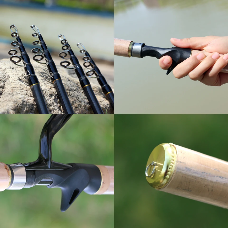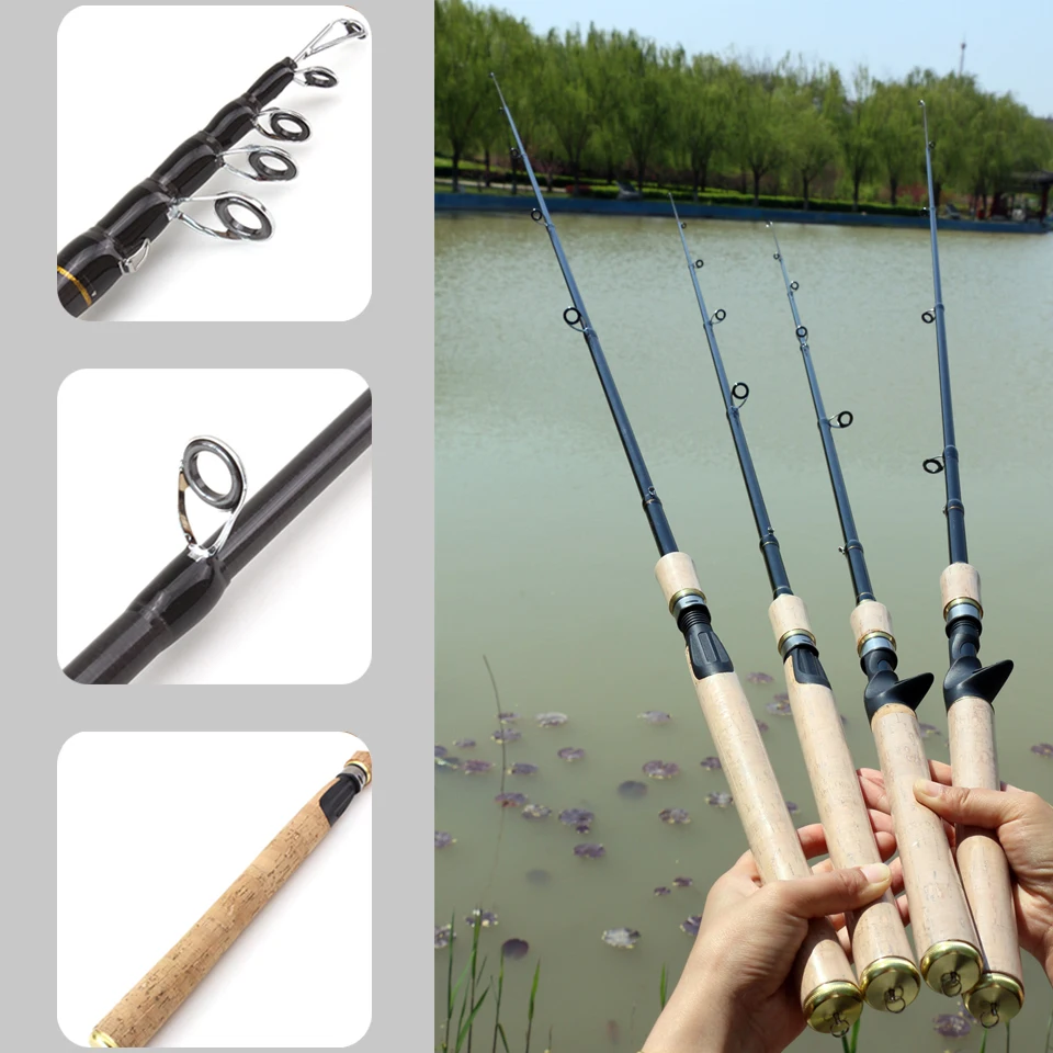 Карбоновая телескопическая удочка, спиннинг с деревянной ручкой, 1,...