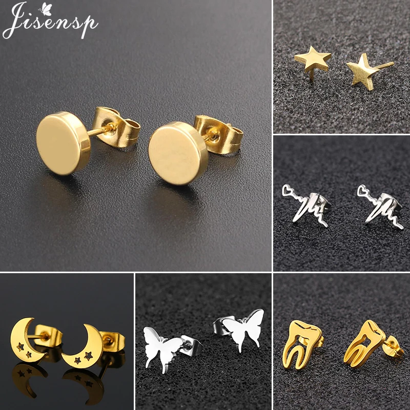 2020 корейские модные серьги-гвоздики со звездой и Луной для женщин, серьги-бабочки из нержавеющей стали с сердцебиением, свадебные ювелирные изделия, аксессуары