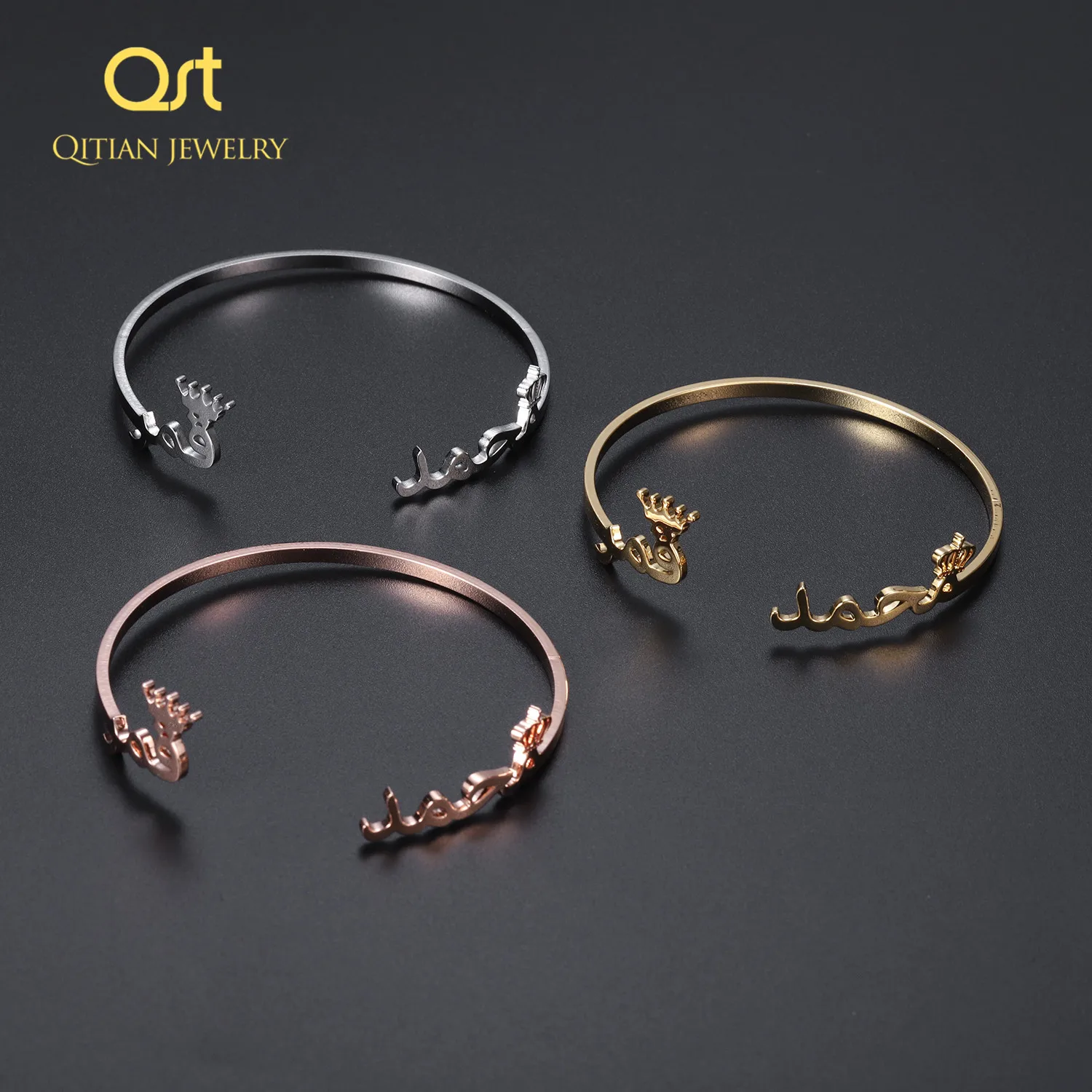 Персонализированные браслеты и браслеты с арабским именем в виде короныбраслет с именем на заказ для женщин, модные ювелирные изделия из нержавеющей стали для вечерние, подарки