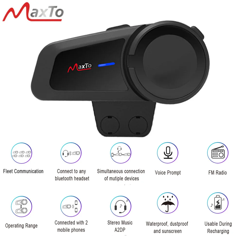 Водонепроницаемая гарнитура для мотоциклетного шлема MAXTO M2, 6 водителей, говорящая групповая связь, bluetooth, FM-радио, универсальная функция сопряжения