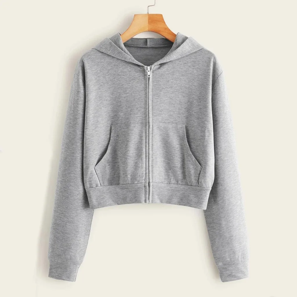 Женская толстовка с капюшоном Moletom, повседневный однотонный свитшот на молнии с длинным рукавом и карманами, 2020