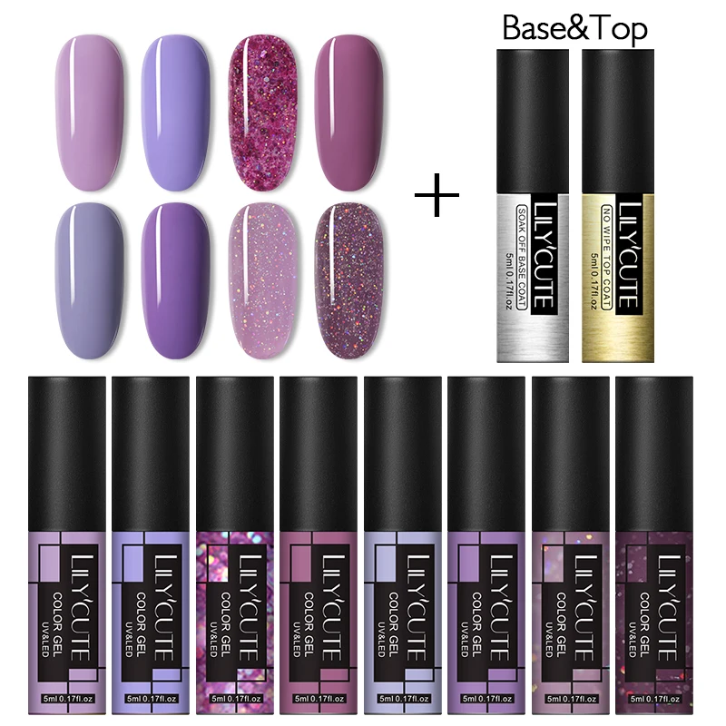Набор гель-лаков для ногтей LILYCUTE, 810 шт., гибридные Лаки, полуперманентный, базовое и топовое покрытие для светодиодной подсветки, Гель-лак для нейл-арта комплектов