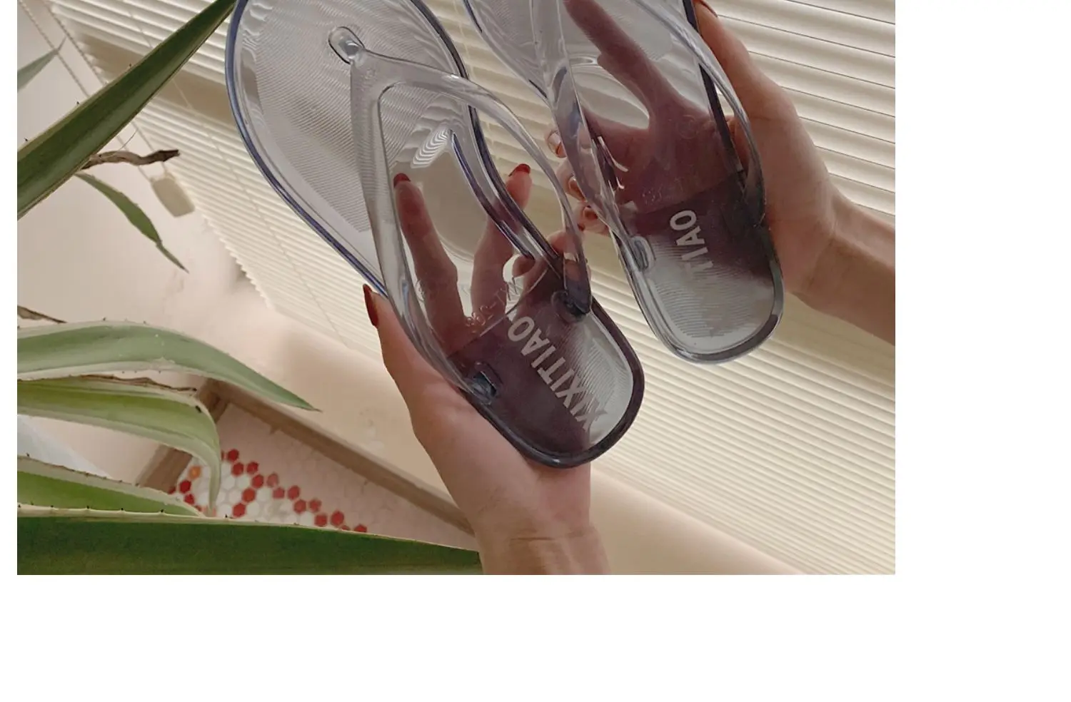 Вьетнамки; Женская обувь на плоской подошве; Прозрачная пляжная обу...