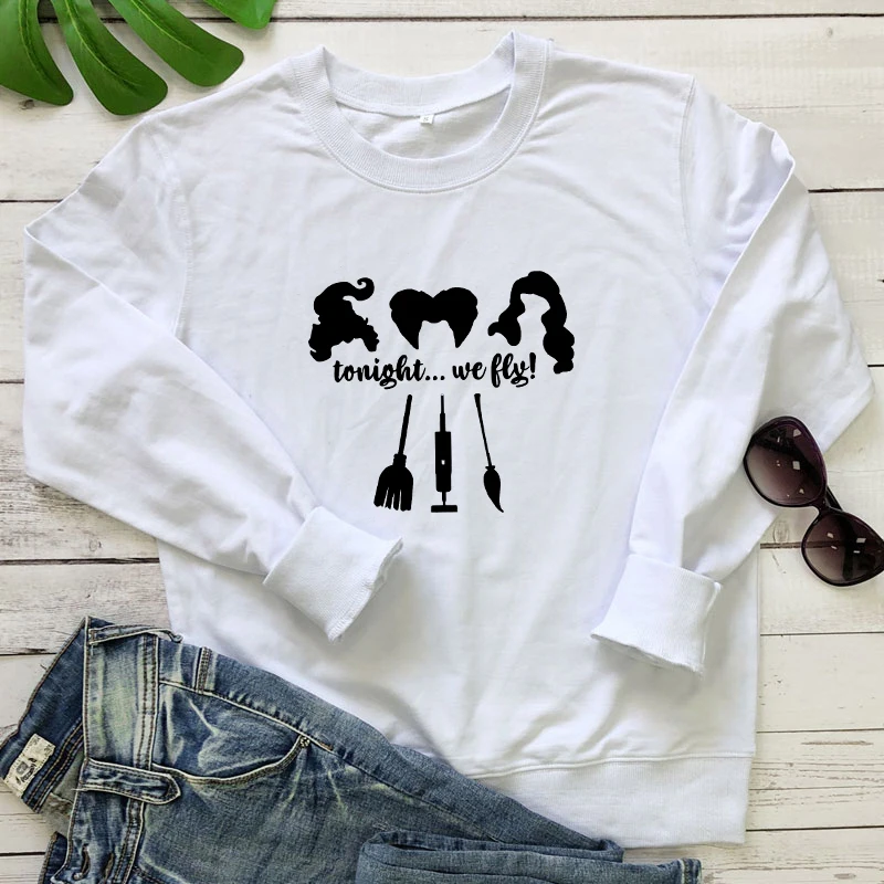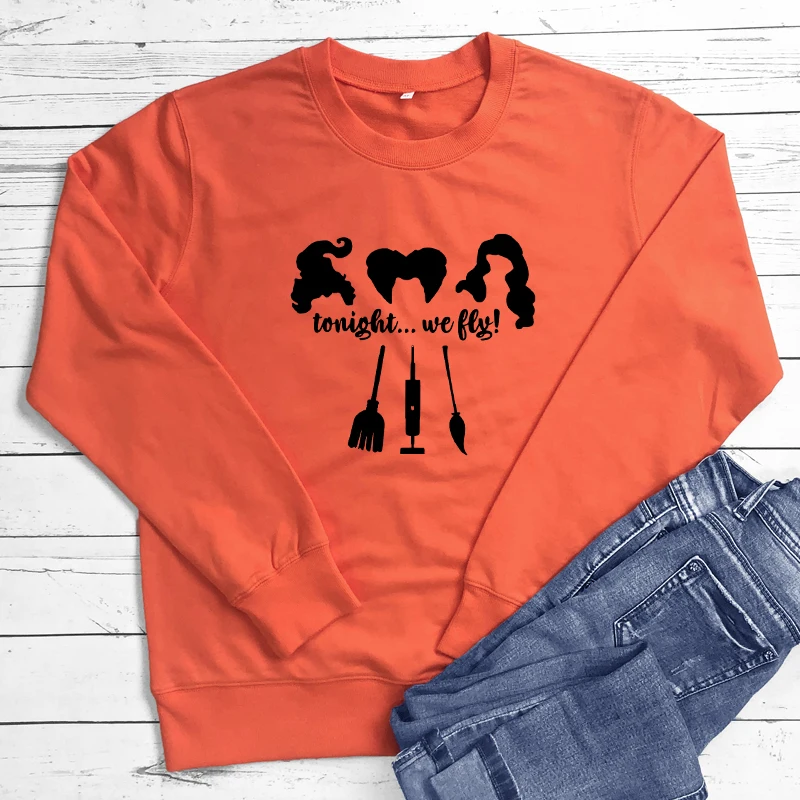 Tonight We Fly 100% хлопок Свитшот осень подарок на вечеринку в честь Хэллоуина Пуловеры Смешные Женские графические Witches праздничный свитер