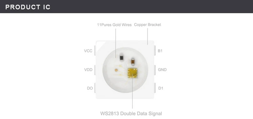 WS2813 должен использовать блок питания DC5V и светодиодный контроллер управления для управления!