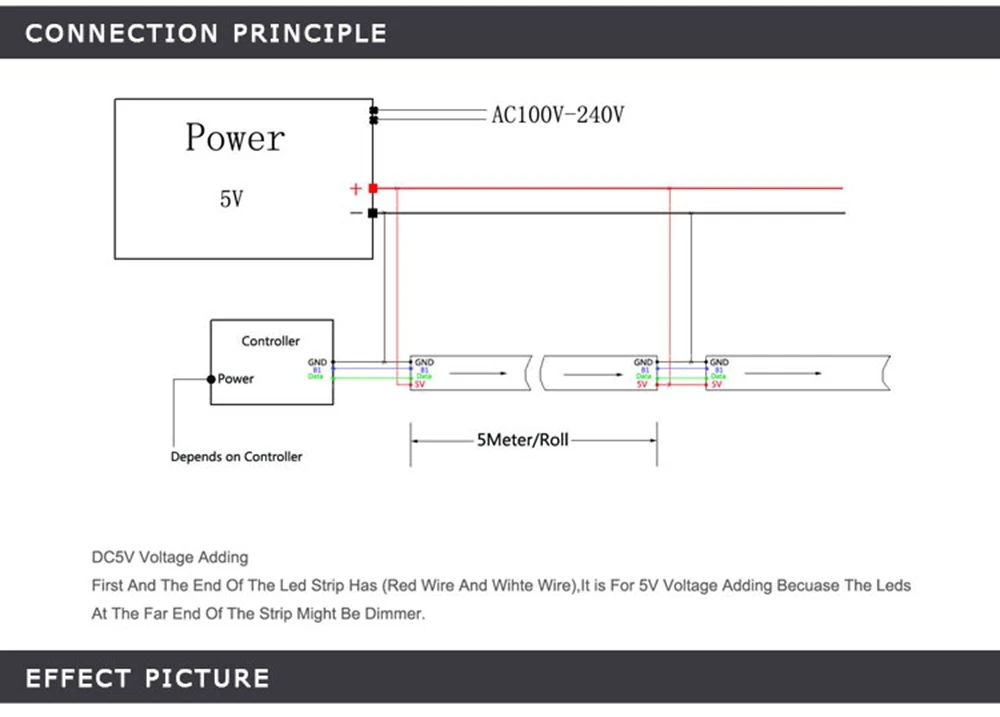 Один поврежденный пиксель не повлияет на работу других leds', версия двойных сигнальных проводов, сигнал может перейти к передаче