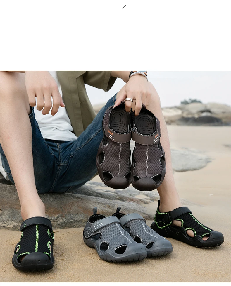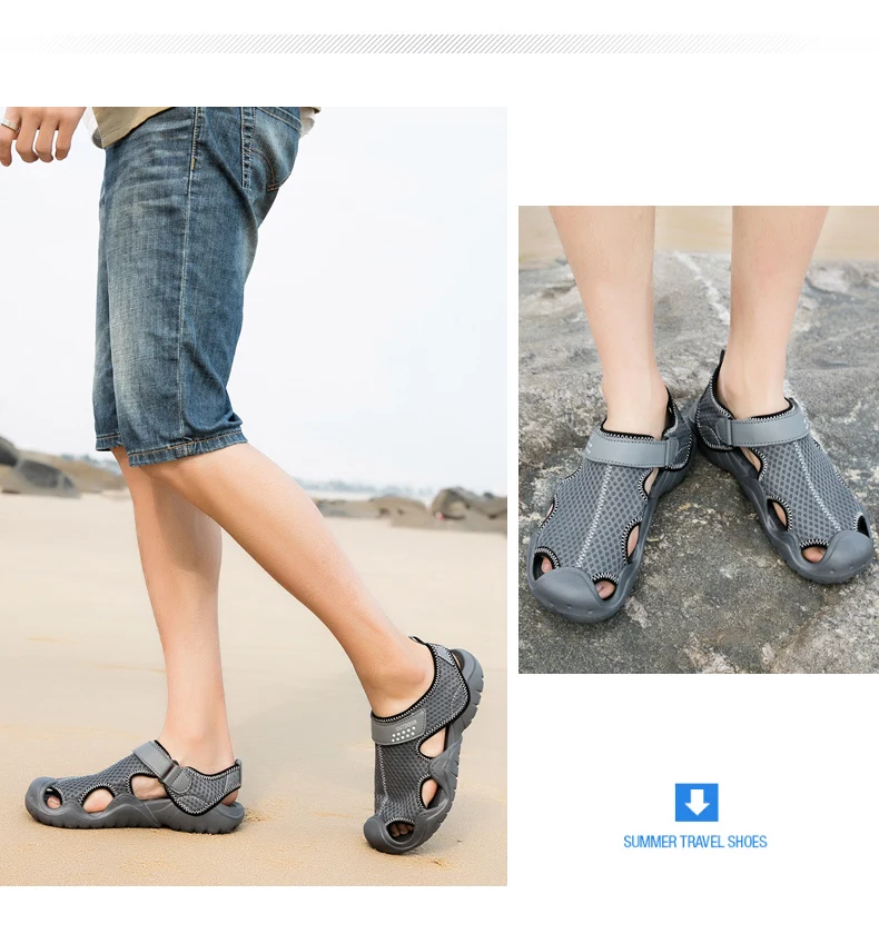 Мужские сандалии, сетчатые дышащие легкие сандалии с закрытым носко...