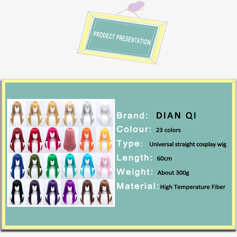 Парики DIANQI для косплея для женщин, 34 Цвета, 60 см, длинные прямые волосы, розовый, серый, белый, фиолетовый, черный, розовый, разноцветные, вечерние