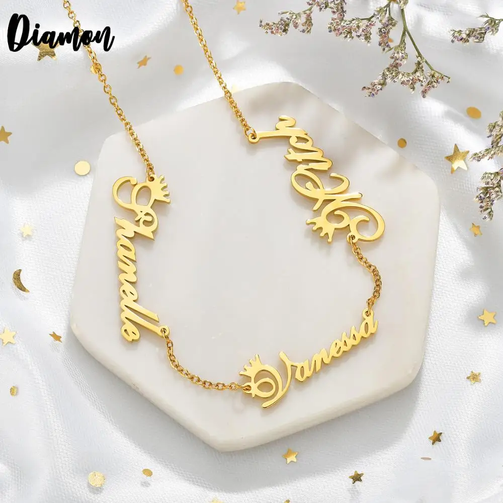 Diamon 2020, новинка, персонализированное ожерелье с несколькими именами, именные таблички на заказ, подвеска, ожерелье, Ювелирное Украшение, лучший подарок, нержавеющая сталь