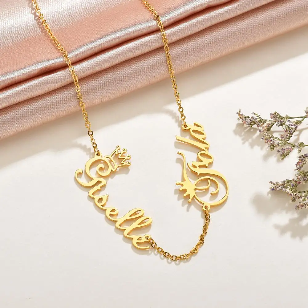 Заказное модное ожерелье из нержавеющей стали с именами и золотыми ...