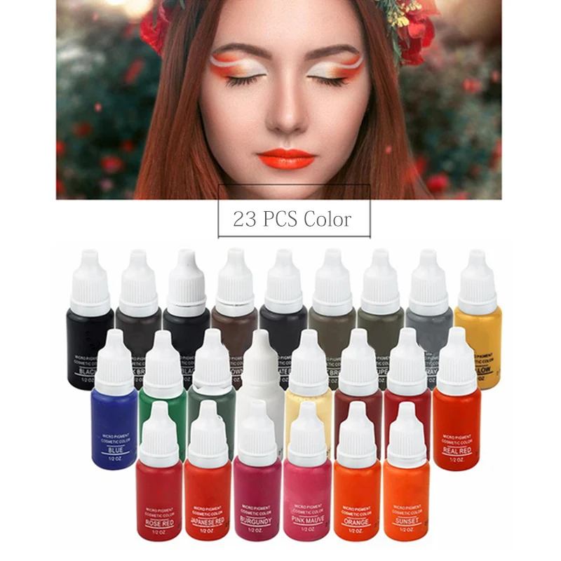 23 Цвета, 15 млбутылка, микроблейдинг, чернила для татуировки, пигмент, Перманентный макияж, чернила для татуировки, косметический инструмент для бровей, подводки для глаз, губ, татуировки