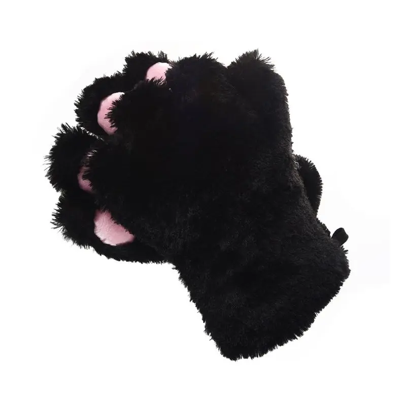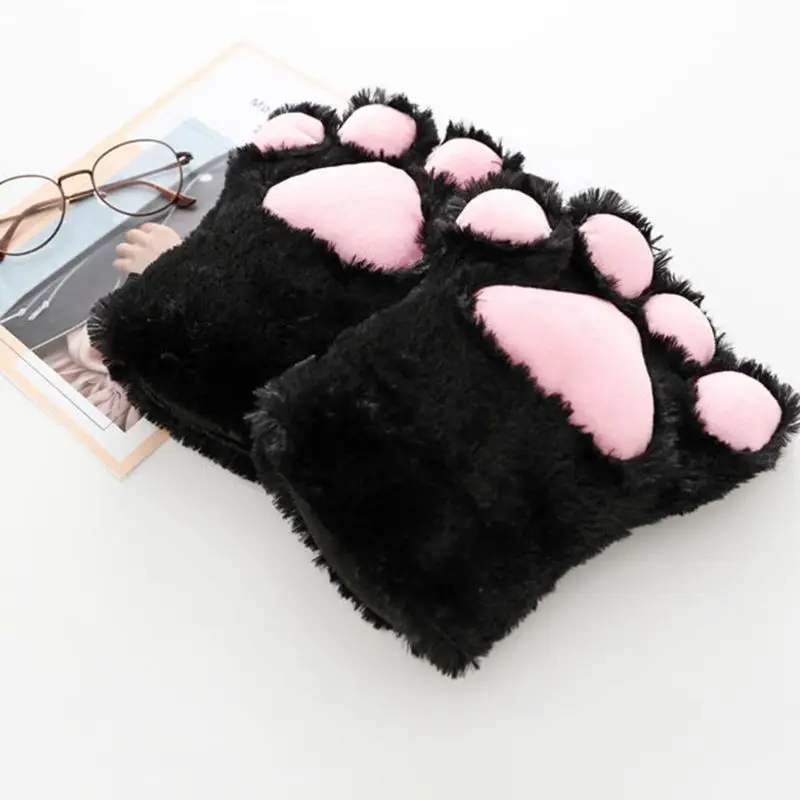 Женские зимние теплые пушистые плюшевые перчатки в стиле аниме Лолита с медведем, кошачьей лапой и мультяшными животными, косплей рукавицы