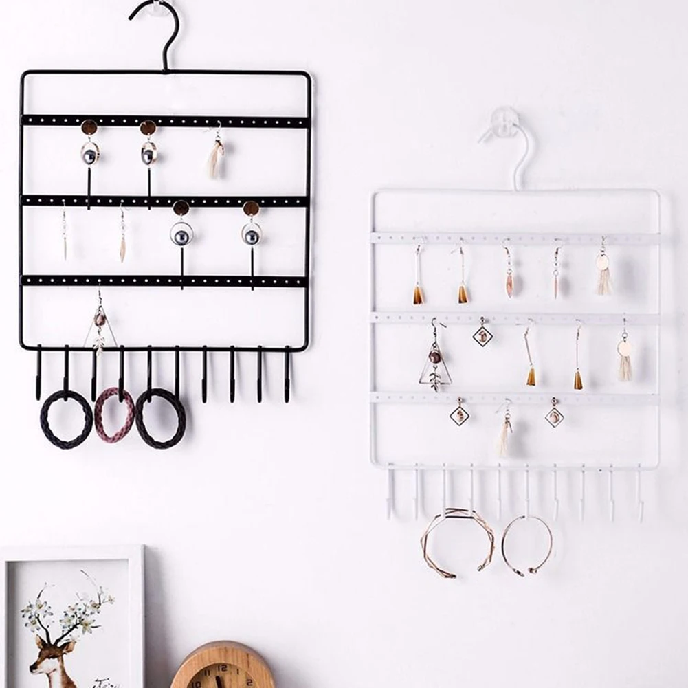 Подставка-органайзер для ювелирных изделий, 66 отверстий и 10 крючков