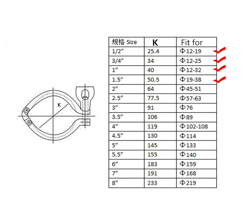 Гигиенические зажимы из нержавеющей стали, 0,5 дюйма, 1 дюйм, 1,5 д...