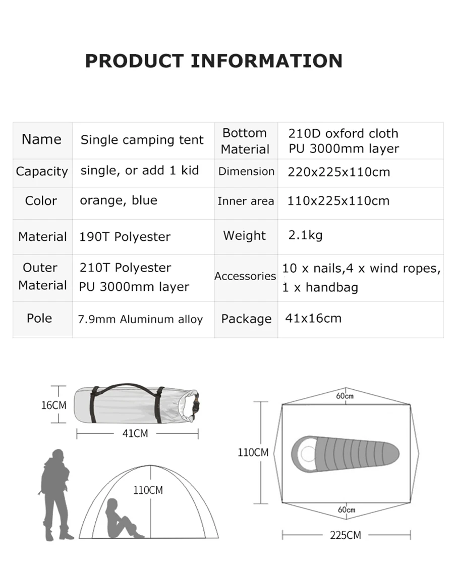 Палатка для походов, 1 человек, Desert Fox, водонепроницаемая, легкая, портативная, с сумкой для переноски, для пляжа, путешествий, пикника