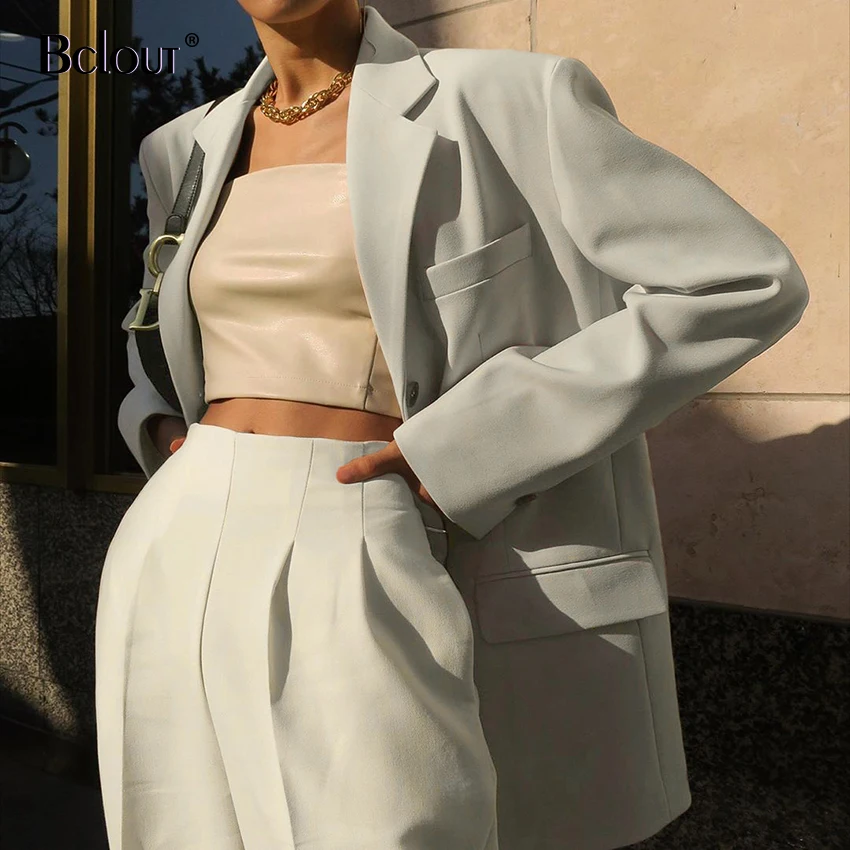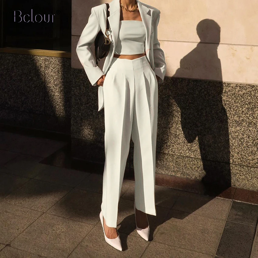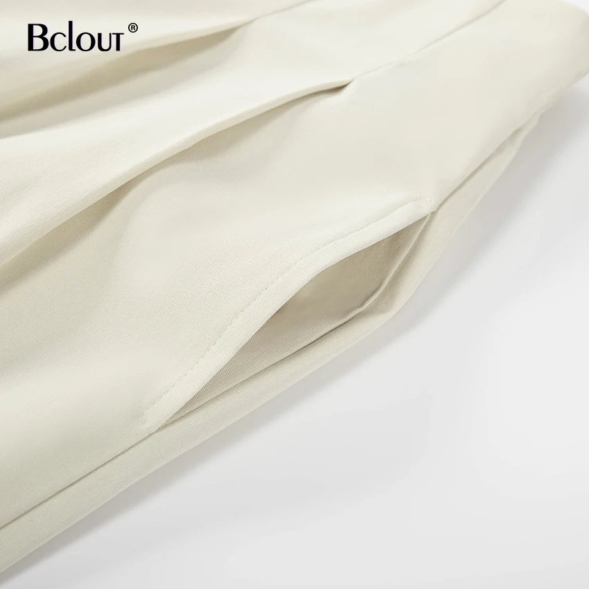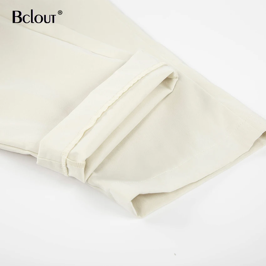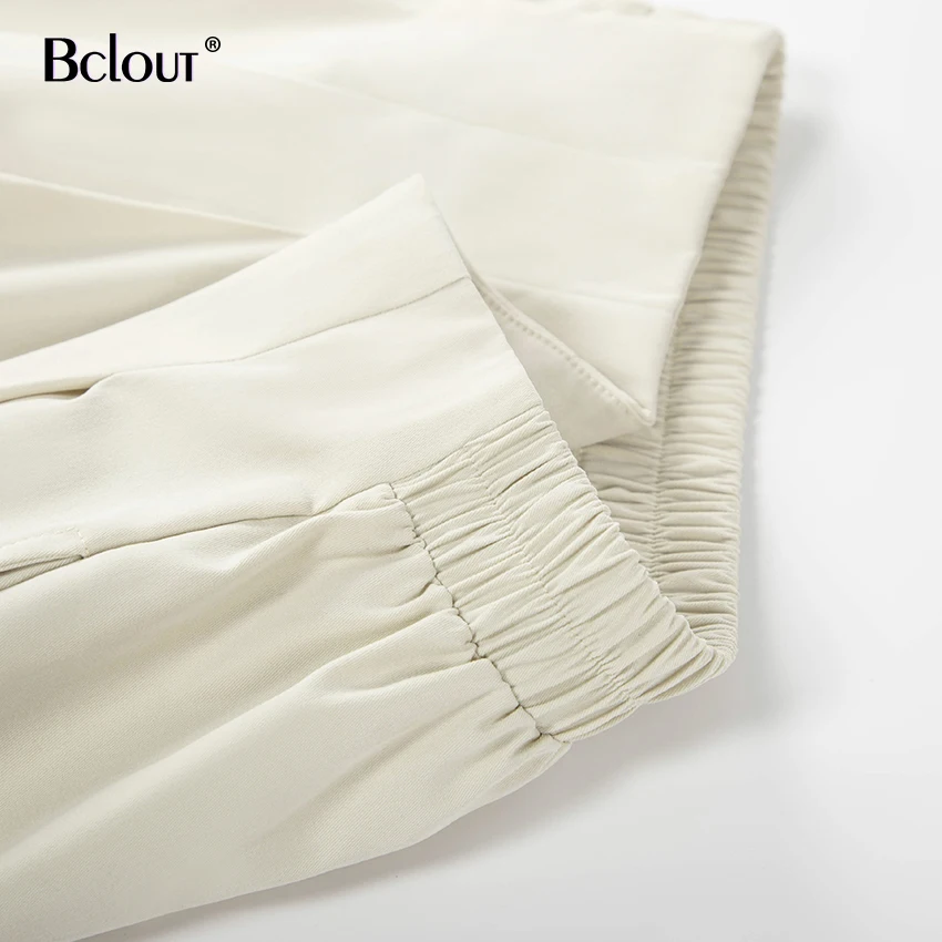 Брюки Bclout женские с завышенной талией, однотонные длинные офисные штаны свободного покроя, из полиэстера с карманами, Осень-зима