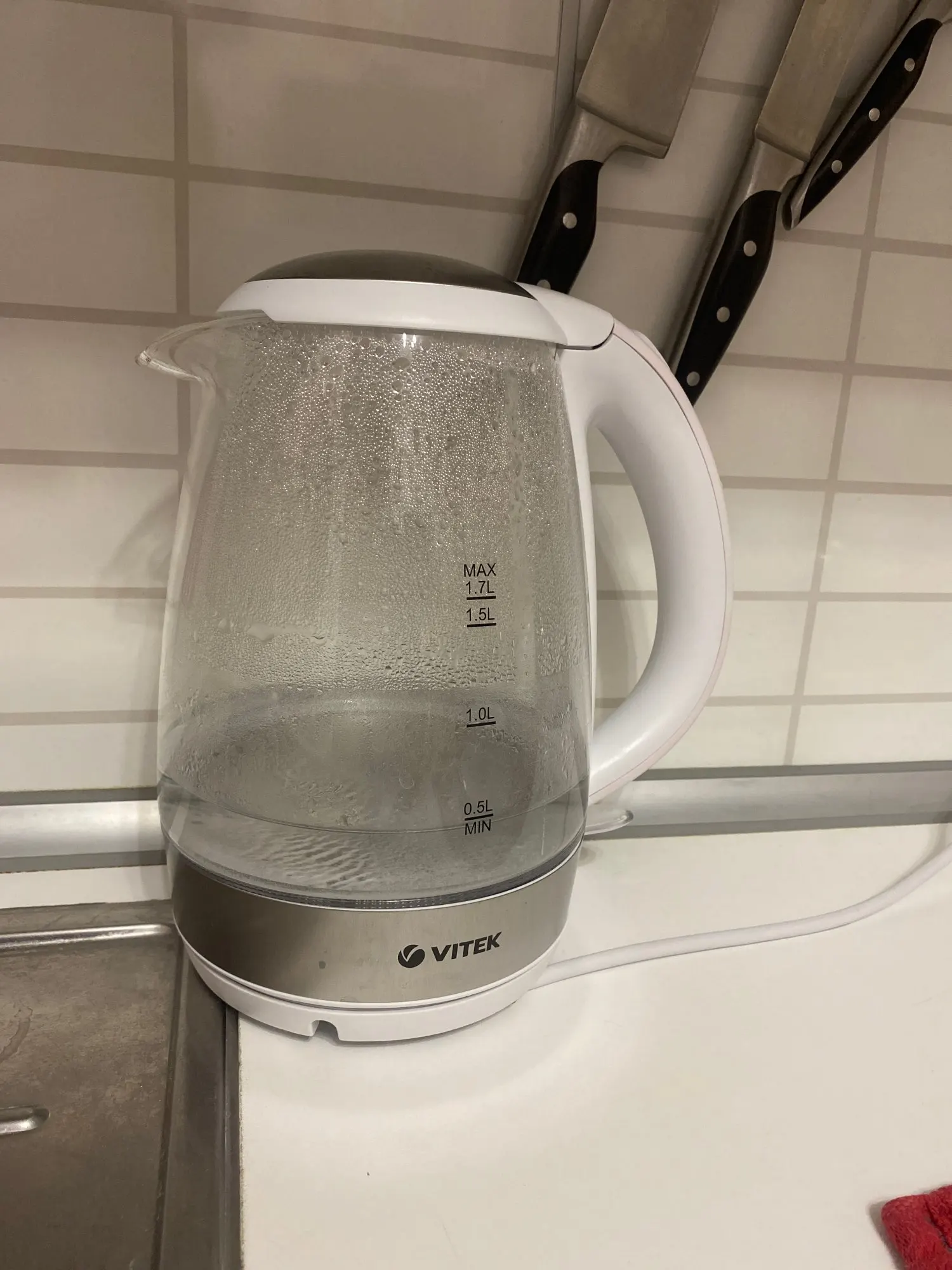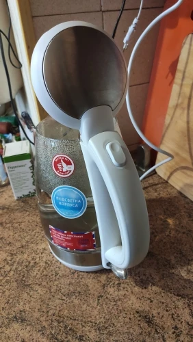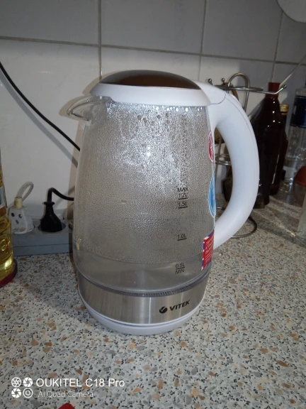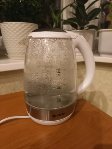 Хороший чайник, благодаря широкой крышке удобно наливать в него воду. Так как сверху нет металлической окантовки, не будет следов от накипи да и чистить будет легче. Хорошо смотрится на кухне, где техника белого цвета.