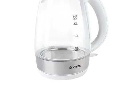 Электрический чайник вмещает 1,7 литра воды. Этого хватит на большое количество вкусных напитков. А удобный индикатор уровня воды в чайнике поможет точно отмерить количество жидкости.