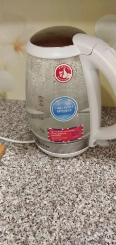 очень хороший чайник, подсветка работает, закипает быстро. С продавцом не общалась