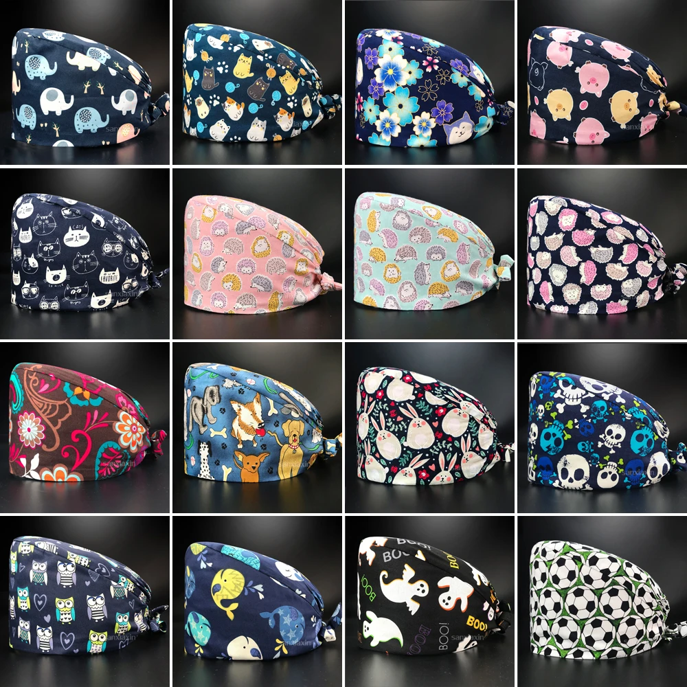 Шапка для медсестры с цветочным узором, регулируемая шапка с разным...