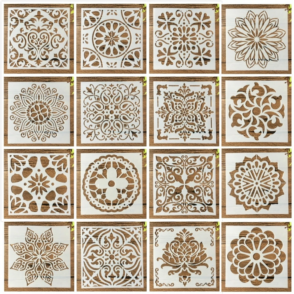 16 шт.лот 15*15 см Мандала окно цветок Сделай Сам слойные трафареты живопись Скрапбукинг Раскрашивание тиснение альбом декоративный шаблон