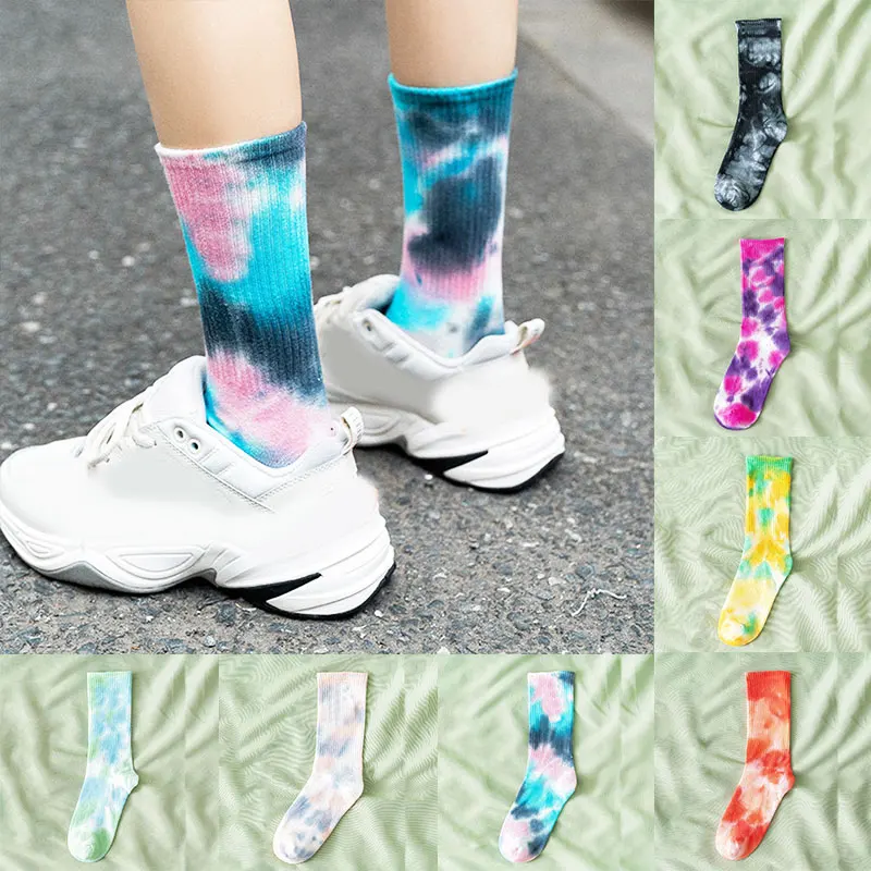 Носки женскиемужские, длинные дышащие, с принтом тай-дай, в стиле хип-хоп, спортивные, баскетбольные, носки для скейтеров, цветные, до колен, весна-лето