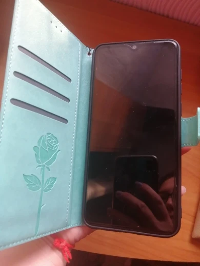 Посылка пришла на 22 день. Упакована в пупырчастый пакет. Чехол качественный, пластиковый чехол подходит плотно на мобильный. Сама книжечка чуть больше мобильного. Застёжка магнитная. Жена довольна. Спасибо.