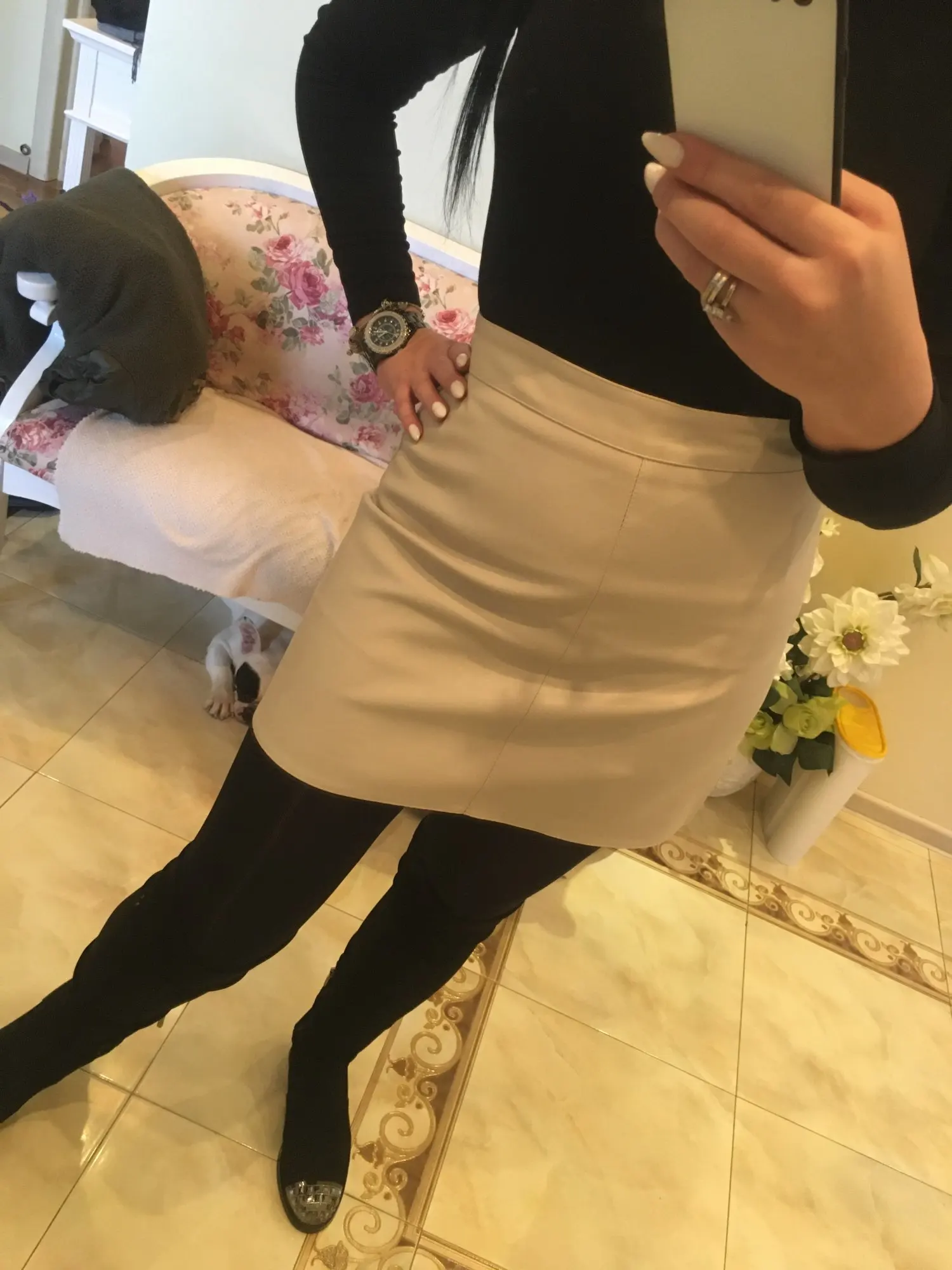 Пожалуй это лучшая приобретённая вещь на али, юбка превзошла мои ожидания. «Кожа» выглядит очень достойно, не блестит, фактура ткани то, что надо. Отдельно удивили строчки, просто идеальные , ровнейшие, даже в магазинах такого не встретишь. Нитки не торчат. На рост 160, объём бёдер 85, талию 62 -село хорошо, не в облипку, есть «воздух» , в талии есть ещё место , но зато можно заправлять джемпер. Описанию и фото соответсвует. Шла месяц , из них 3 недели была в России.