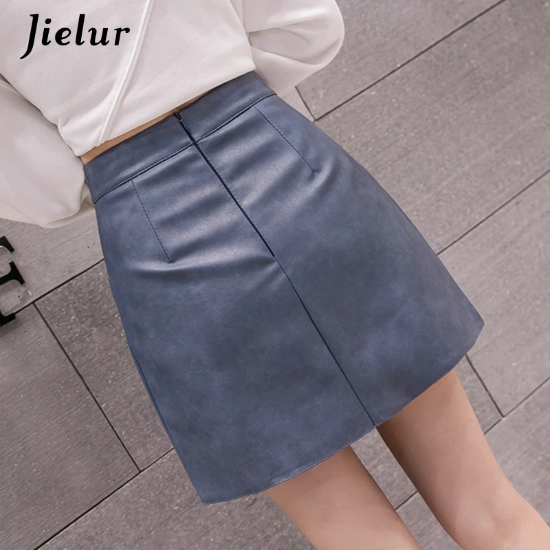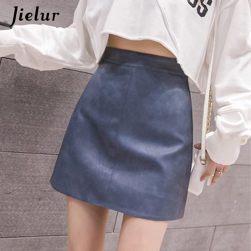 Юбка-мини из искусственной кожи, с завышенной талией, 4 цвета, на осеньзиму