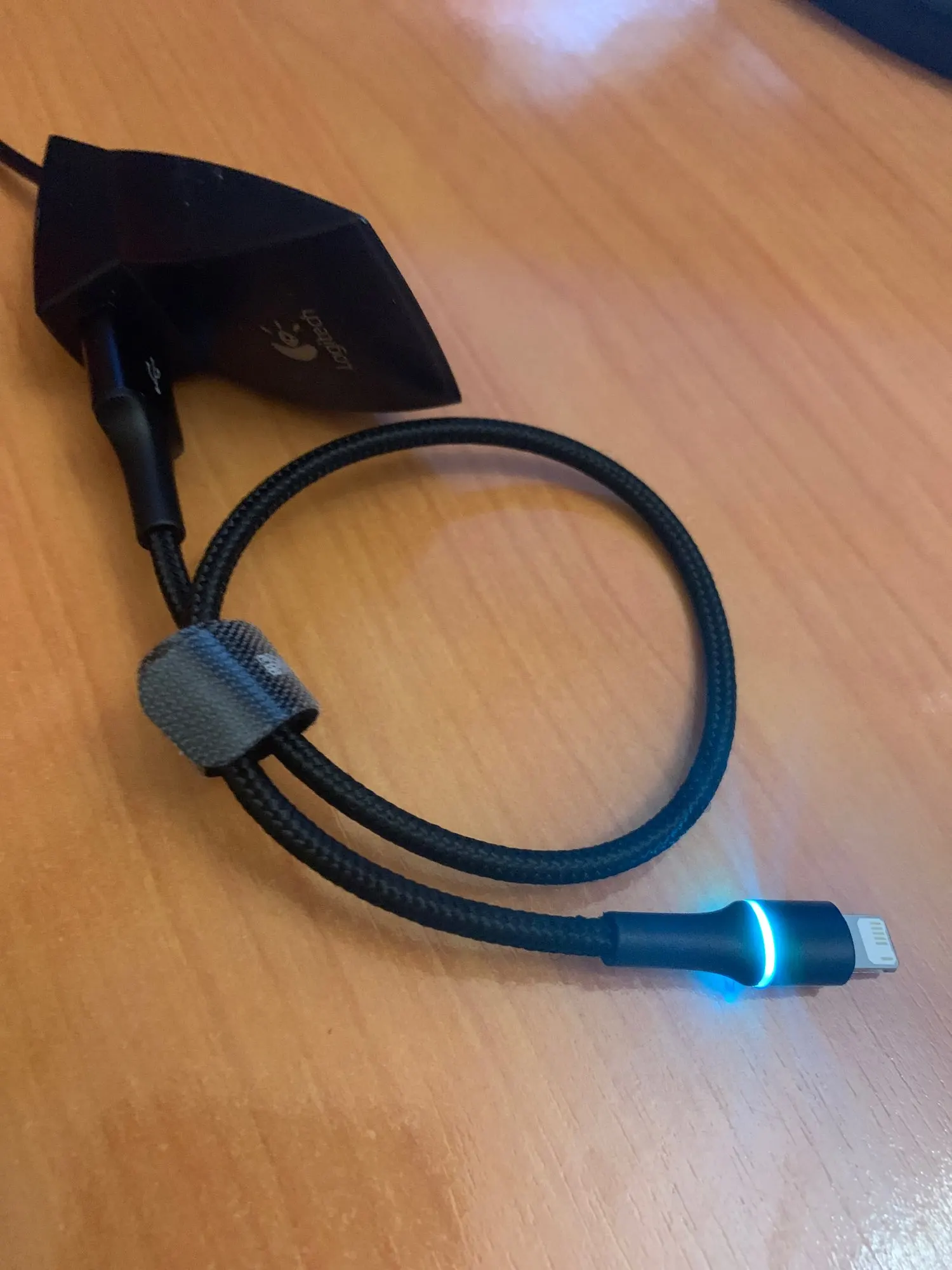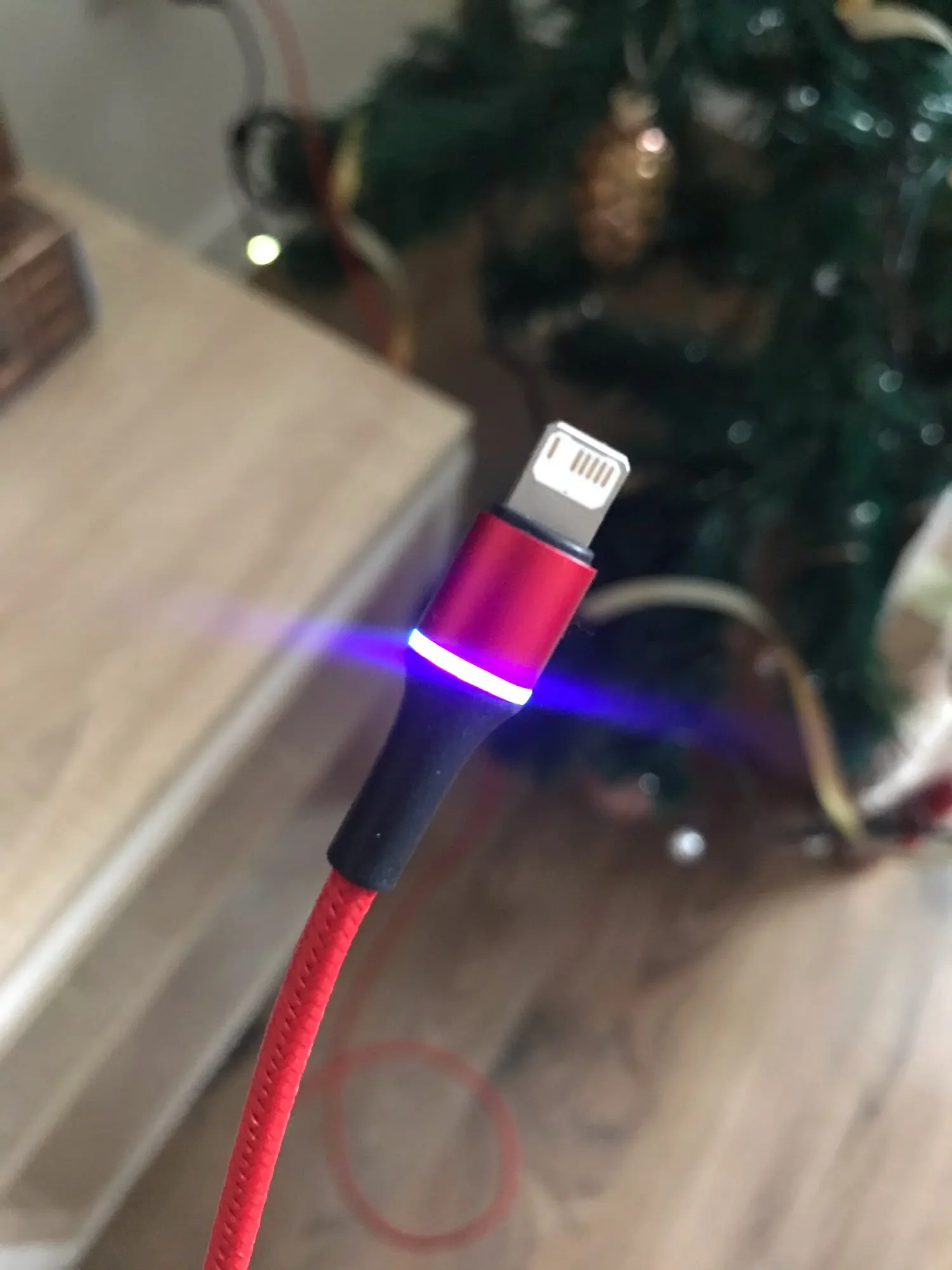 Кабель просто отличный, качество на высоте, есть держатель для кабеля, если тебе не нужна вся длина, можно скрутить и закрепить липучкой, оплётка кабеля топовая, как шнурок. Имеется разноцветная подсветка, которая прям очень яркая, ночью не потеряешь телефон) Работает с iPhone корректно и без нареканий. Посылка дошла за 15 дней в Украину, что очень быстро. Спасибо продавцу, буду ещё заказывать такие кабеля.