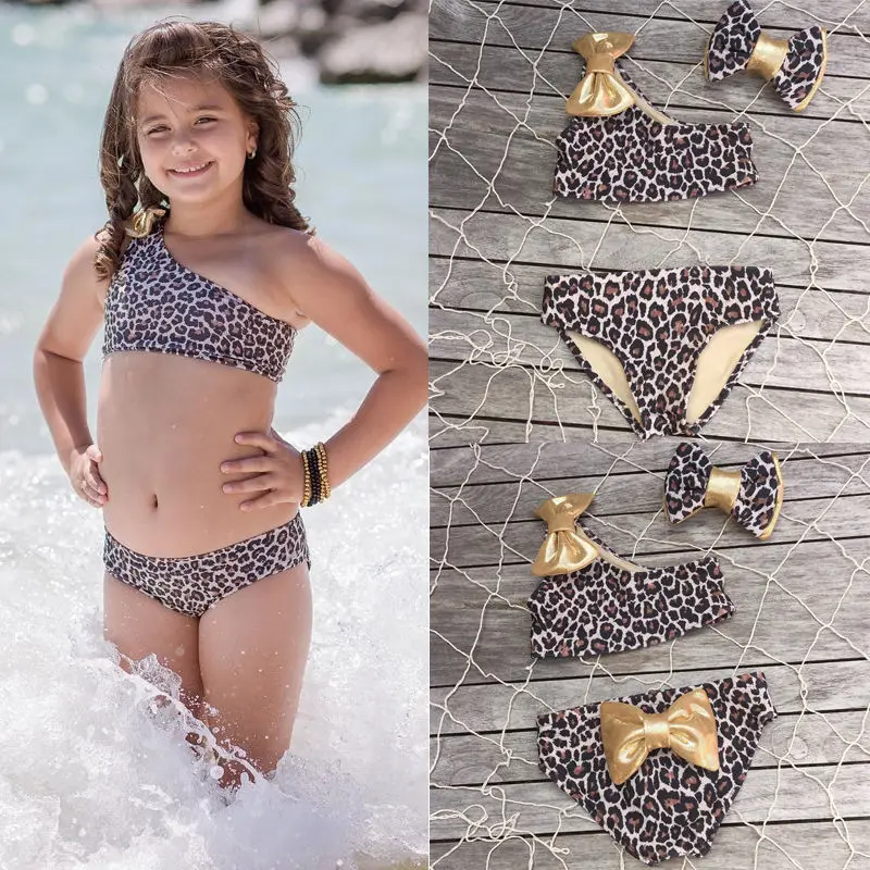 Комплект бикини с бантом и леопардовым принтом, для девочек, 3 шт.