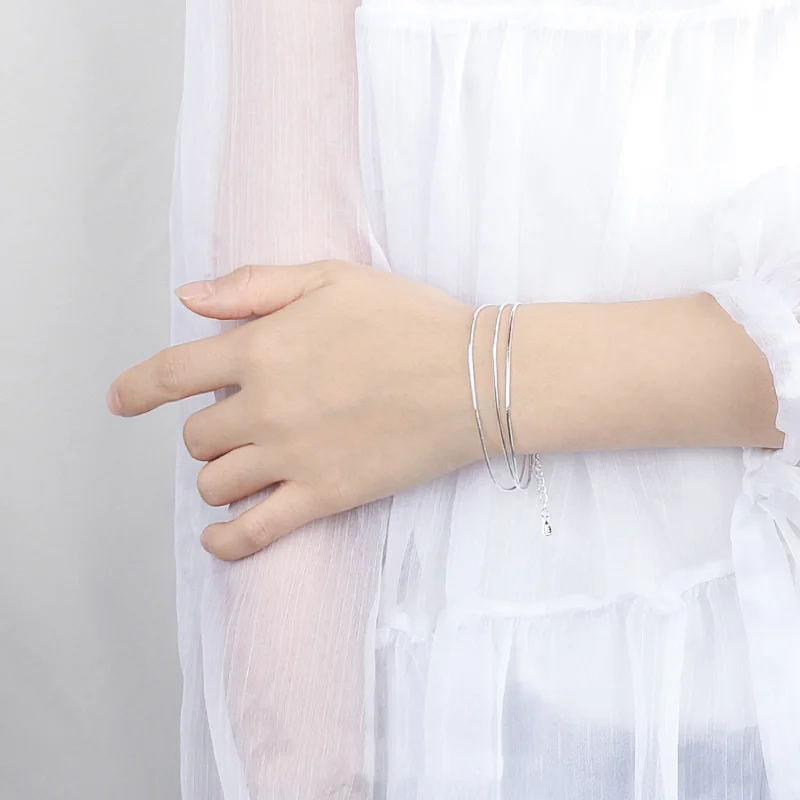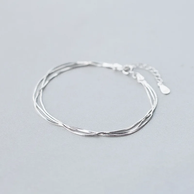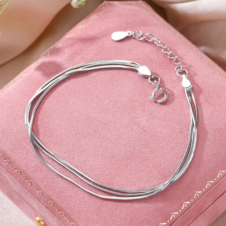 Женский многослойный браслет из серебра 925 пробы, с змеиным плетением