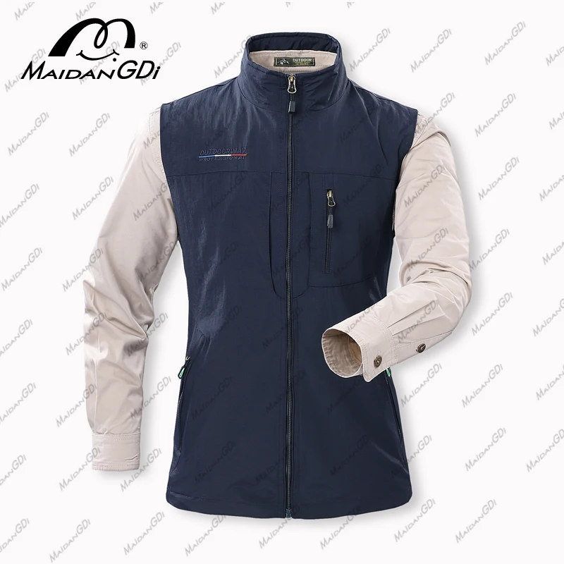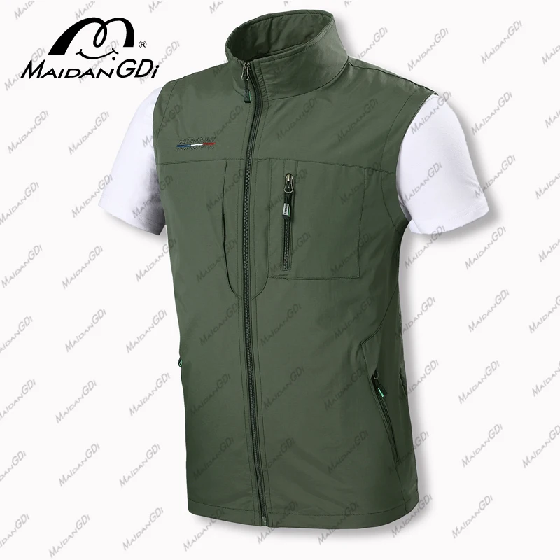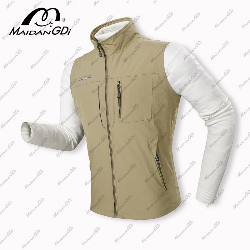Мужской жилет без рукавов MAIDANGDI, однотонный жилет с воротником-стойкой и карманами, для скалолазания, походов, работы, лето 2021