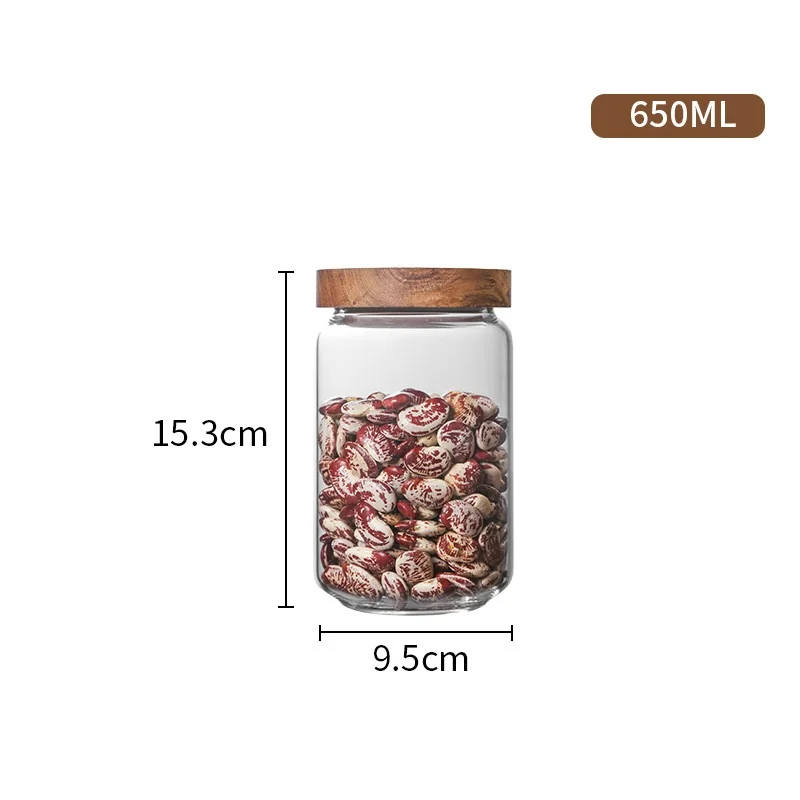 Стеклянный контейнер для хранения пищевых продуктов с деревянной кр...