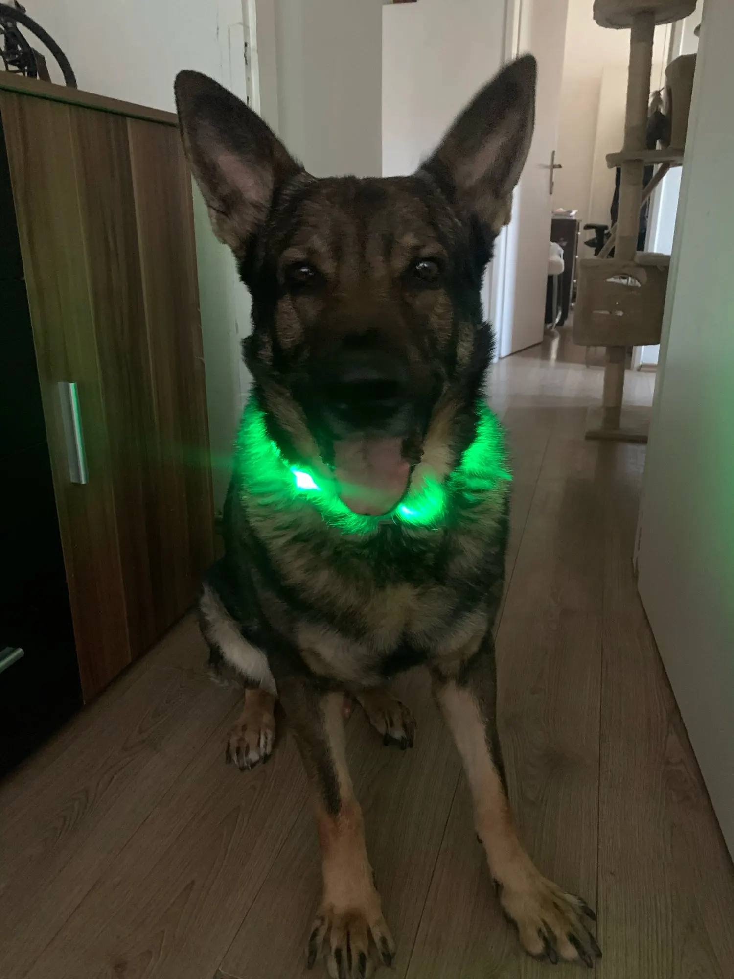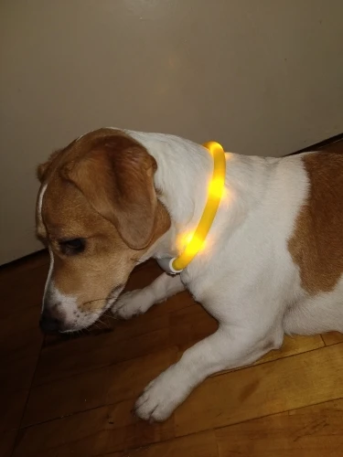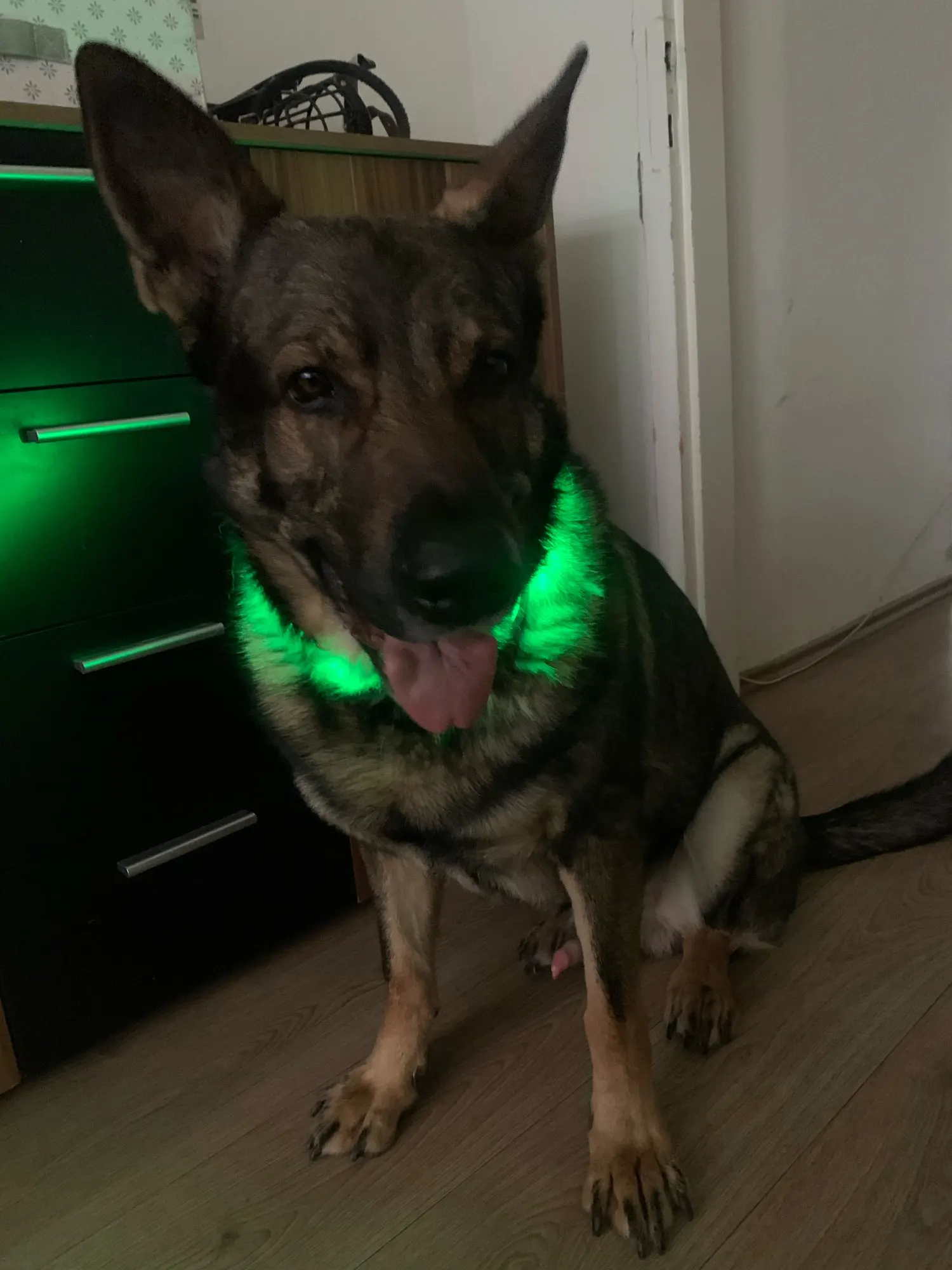 Ошейник хорош. Очень яркий. Собакена не потеряешь ))) Очень долго шёл, около 43 дней. Нам было не к спеху. Пока всё нравиться. Ошейник можно уменьшить при желании. Есть три режима освещения. Заряжается от юсб . Продавец молодец!