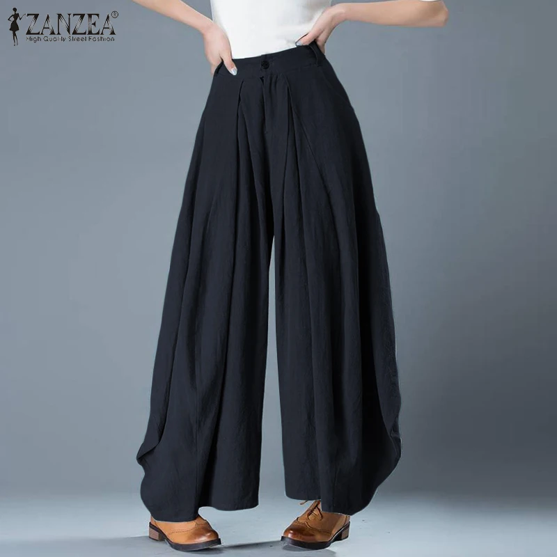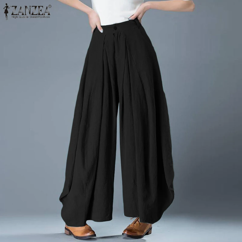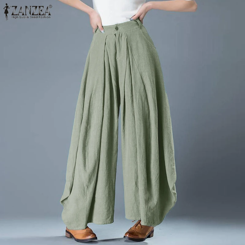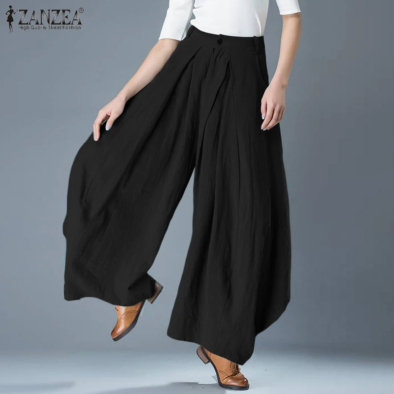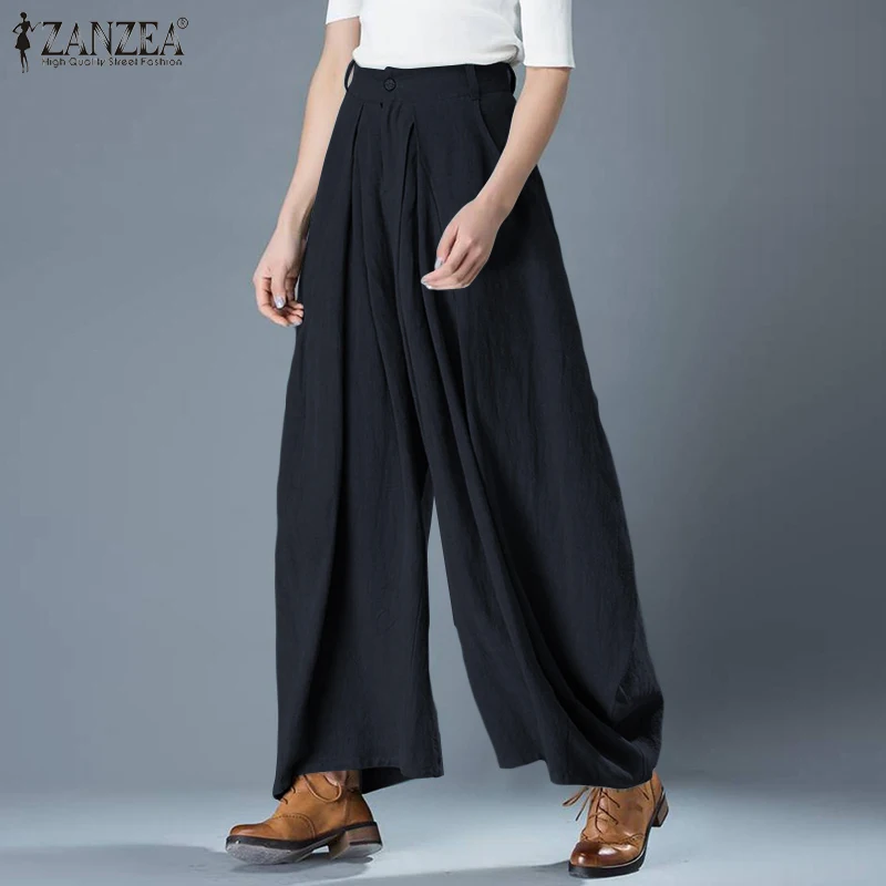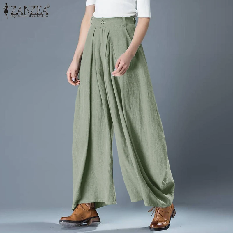 Женские льняные брюки ZANZEA, свободные однотонные длинные брюки палаццо с высокой талией, 5XL, на осень