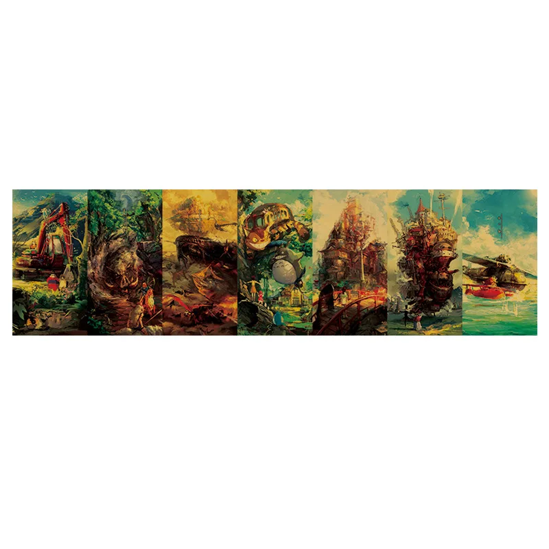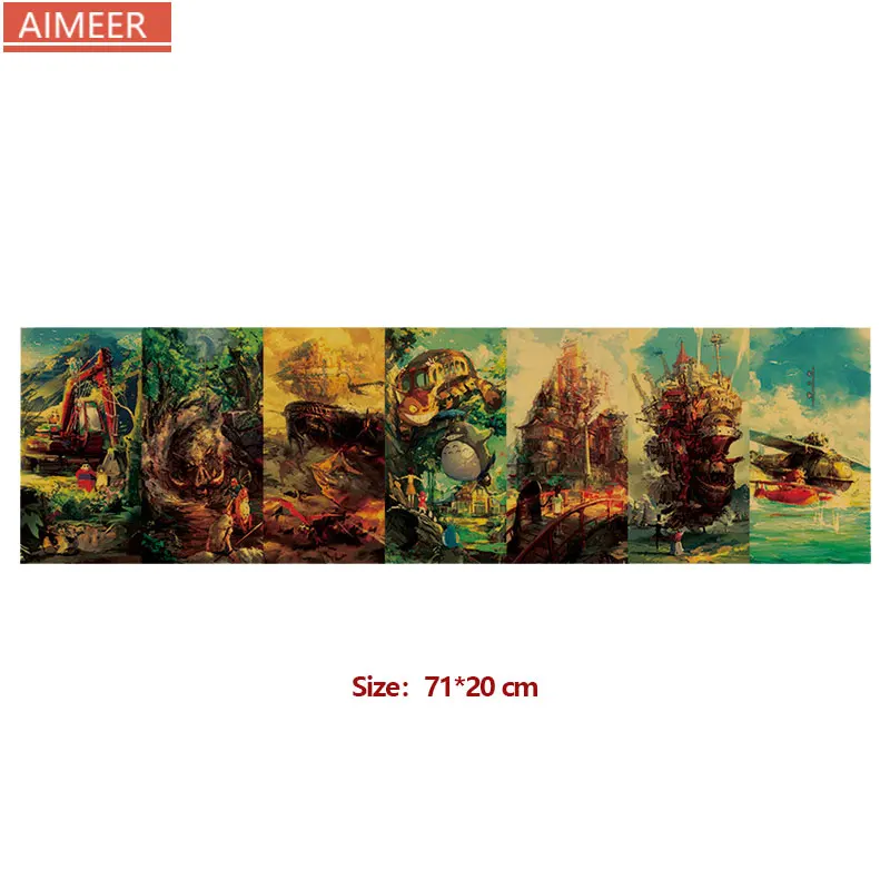 AIMEER Hayao Miyazaki Аниме Коллекция баннер E секция крафт-бумага плакат ретро общежитие декоративная живопись 51*36 см